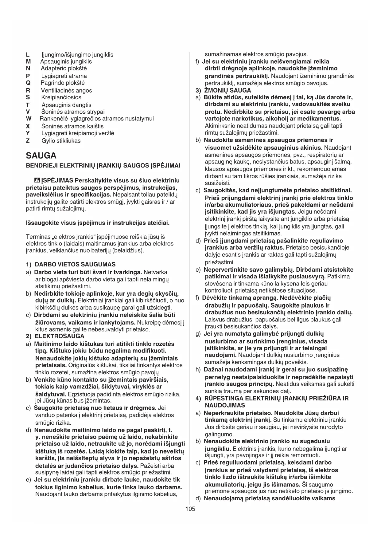 BENDRIEJI ELEKTRINIŲ ĮRANKIŲ SAUGOS ĮSPĖJIMAI