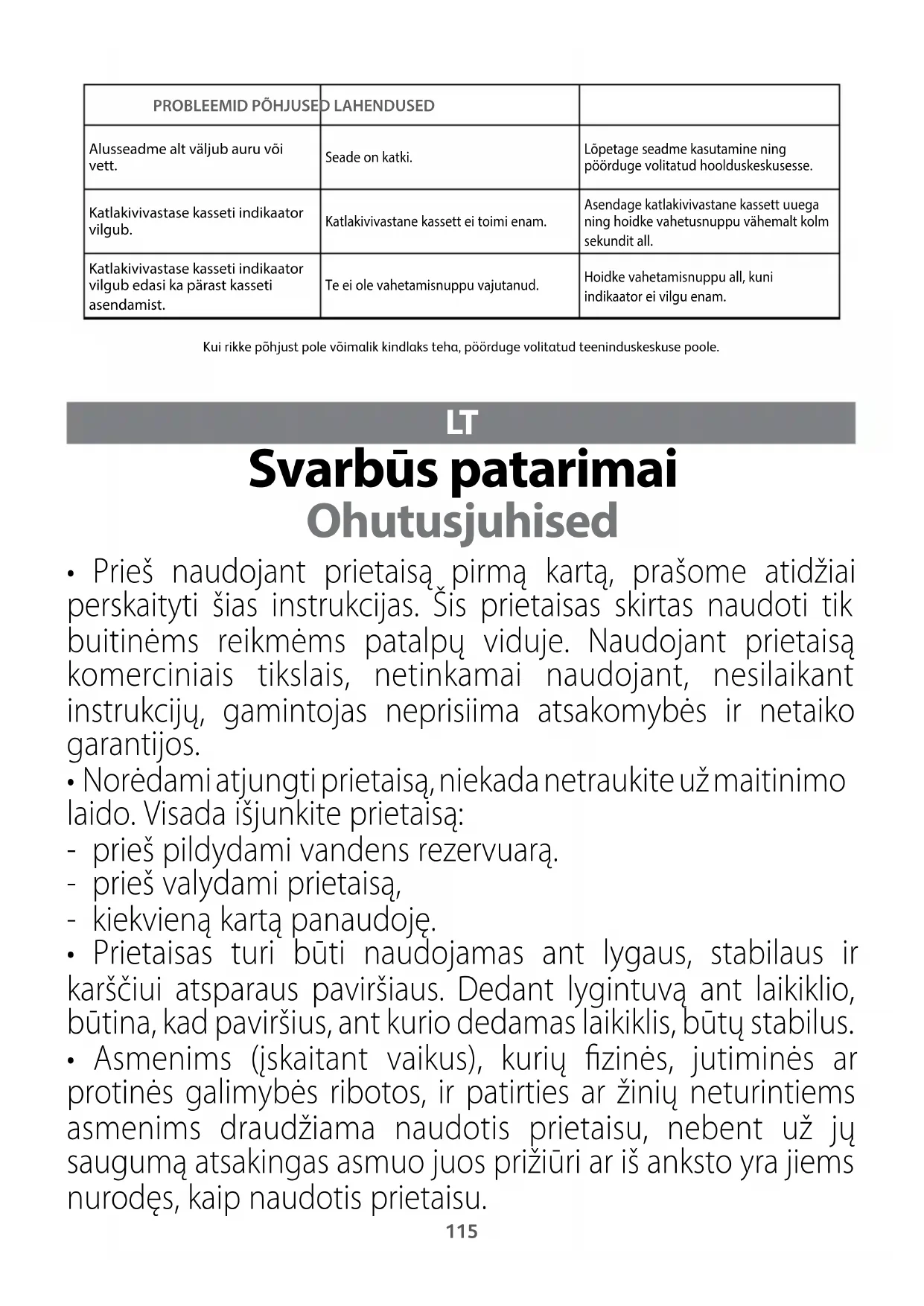 - Asmenims (įskaitant vaikus), kurių zinės, jutiminės ar protinės galimybės ribotos, ir patirties ar žinių neturintiems asmenims draudžiama naudotis prietaisu, nebent už jų saugumą atsakingas asmuo juos prižiūri ar iš anksto yra jiems nurodęs, kaip naudotis prietaisu.116