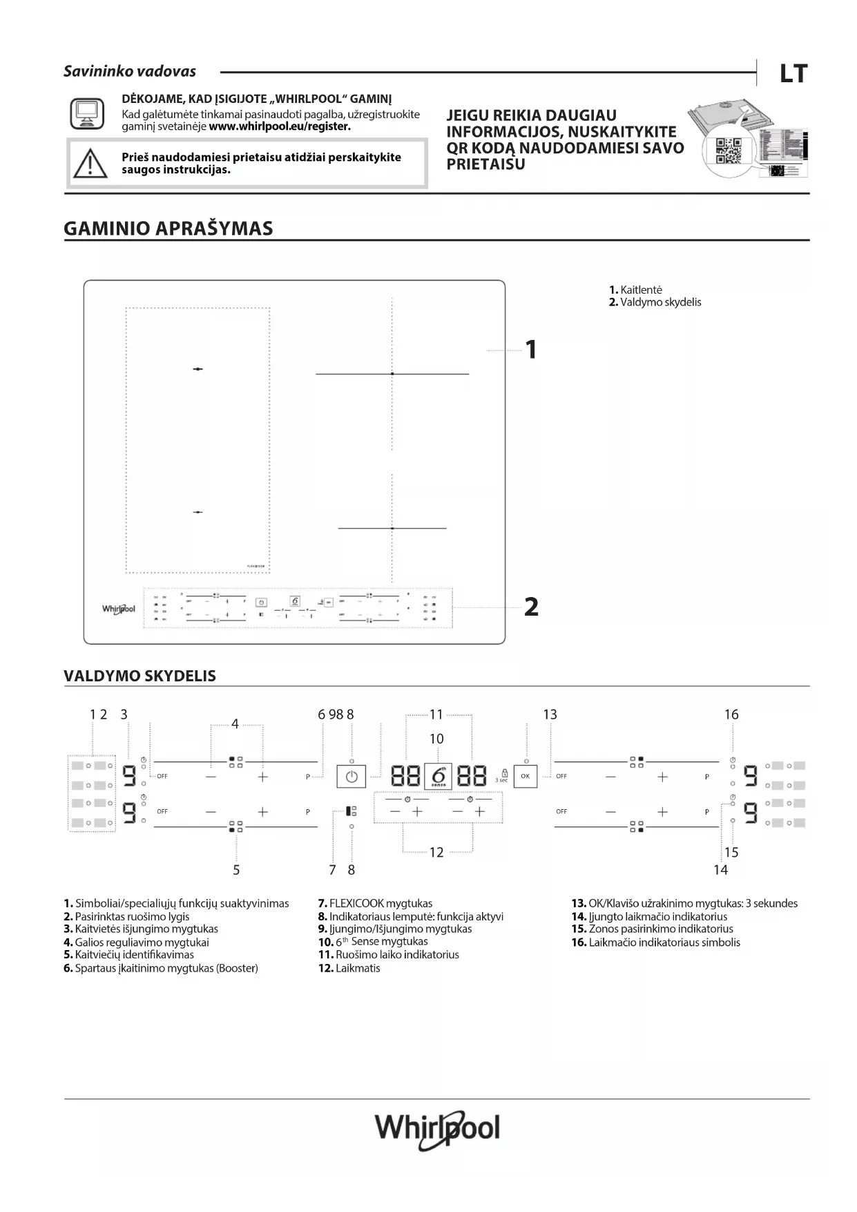 Kad galėtumėte tinkamai pasinaudoti pagalba, užregistruokite gaminį svetainėje www.whirlpool.eu/register.