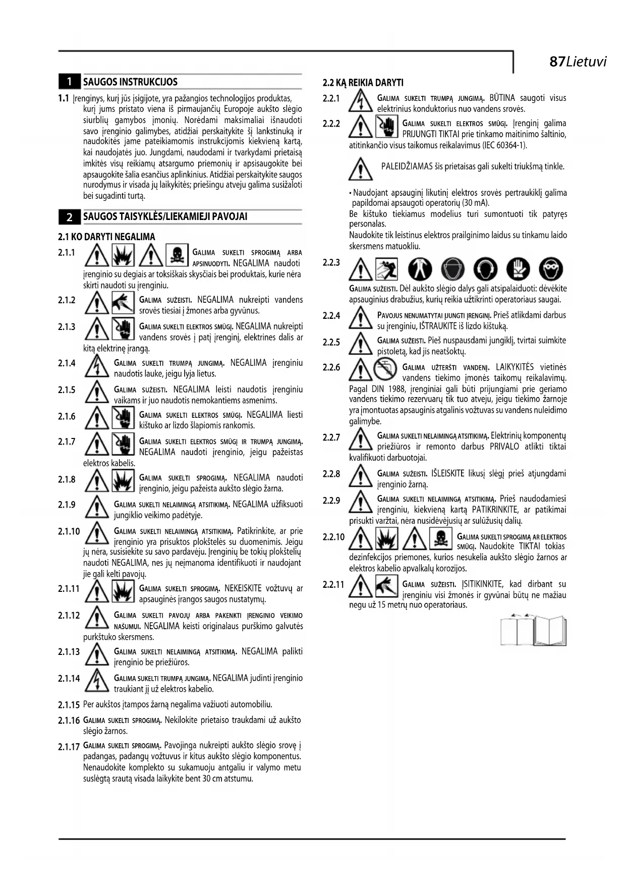 galima sukelti nelaimingą atsitikimą. Elektrinių komponentų priežiūros ir remonto darbus PRIVALO atlikti tiktai kvalifikuoti darbuotojai.