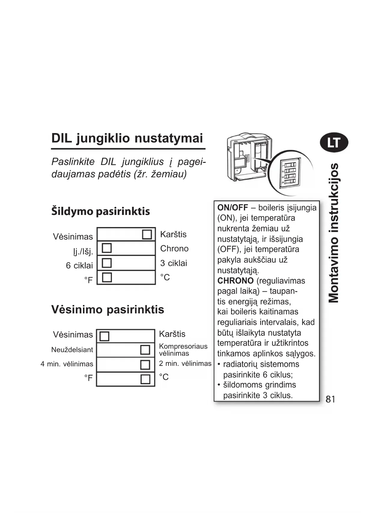 Šildymo Montavimo instrukcijos LT81 Karštis 2 min. vėlinimas