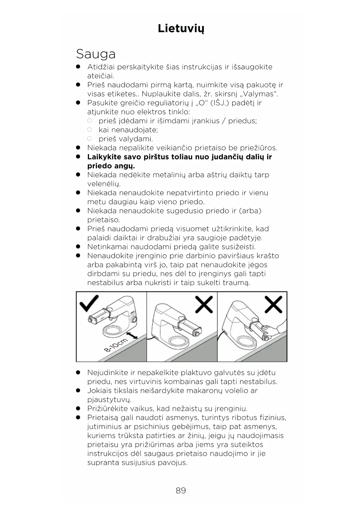 Nenaudokite įrenginio prie darbinio paviršiaus krašto arba pakabintą virš jo, taip pat nenaudokite jėgos dirbdami su priedu, nes dėl to įrenginys gali tapti nestabilus arba nukristi ir taip sukelti traumą. 8-10cm