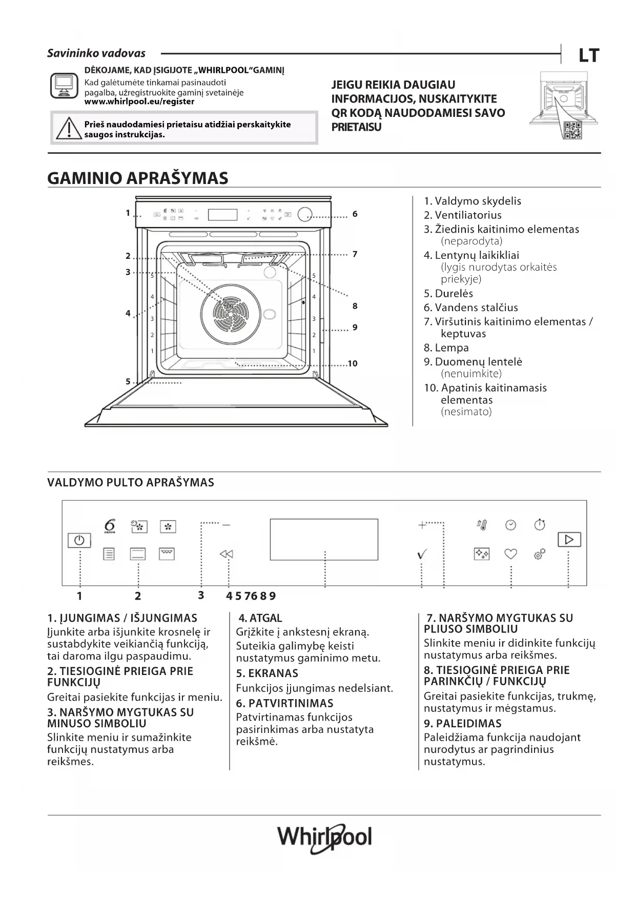 Kad galėtumėte tinkamai pasinaudoti pagalba, užregistruokite gaminį svetainėje www.whirlpool.eu/register