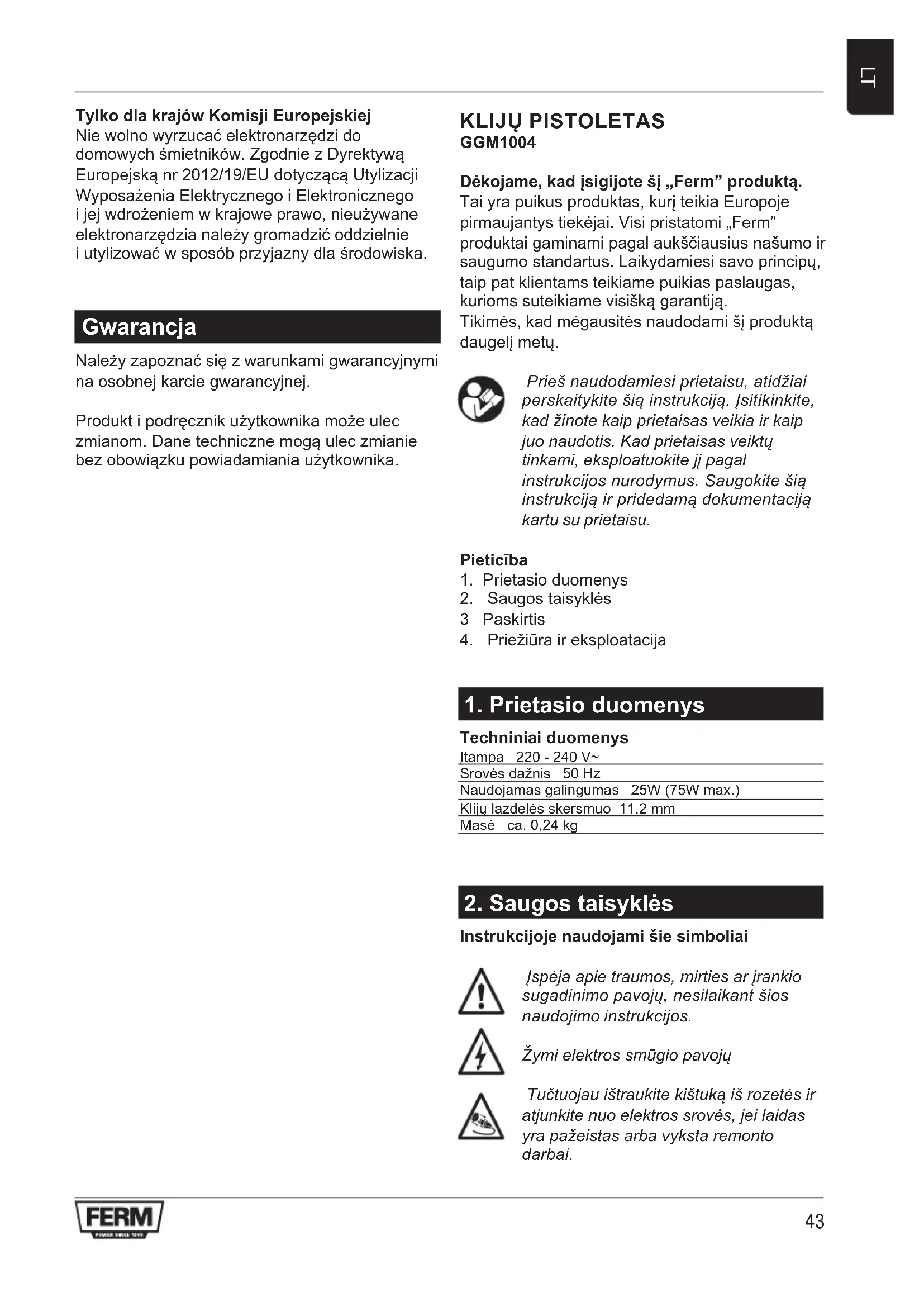 GGM1004 - Klijų pistoletas Ferm - Nemokama naudojimo instrukcija