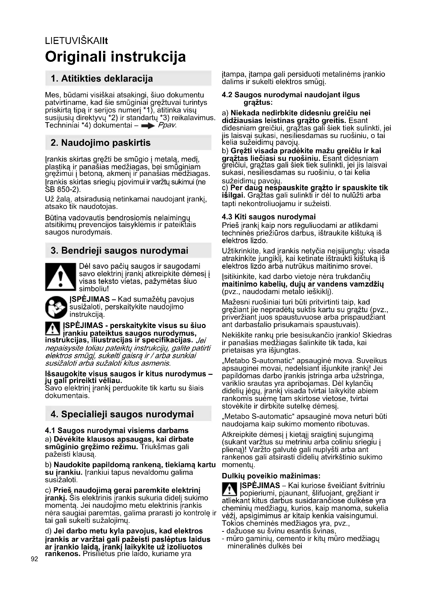 NAUDOJIMO INSTRUKCIJA SB 8502 METABO