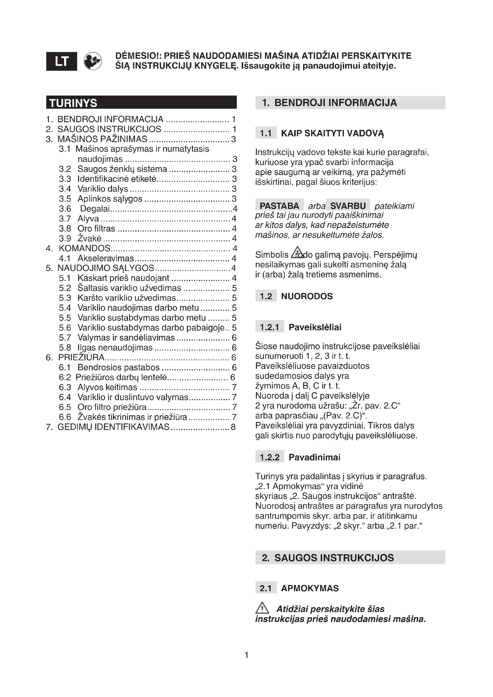 Variklio - NAUDOJIMO INSTRUKCIJOS DĖMESIO: prieš naudojant įrenginį, atidžiai perskaityti šį naudotojo vadovą.