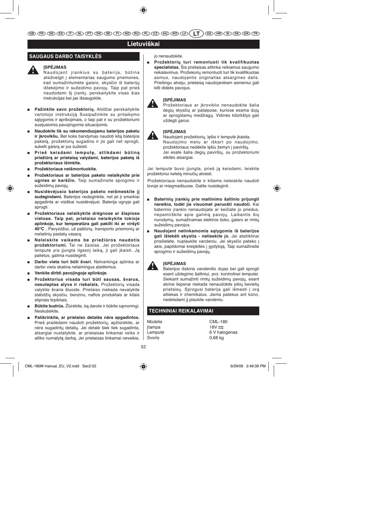 NAUDOJIMO INSTRUKCIJA CML-180 RYOBI