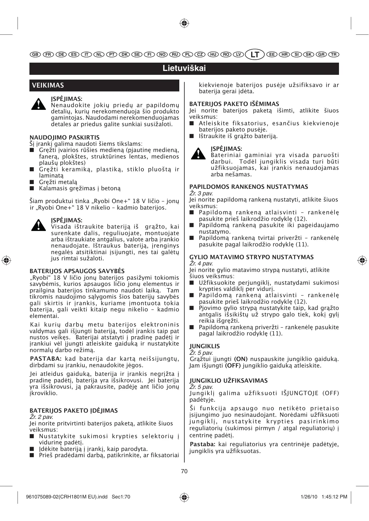 NAUDOJIMO INSTRUKCIJA CRH1801 RYOBI