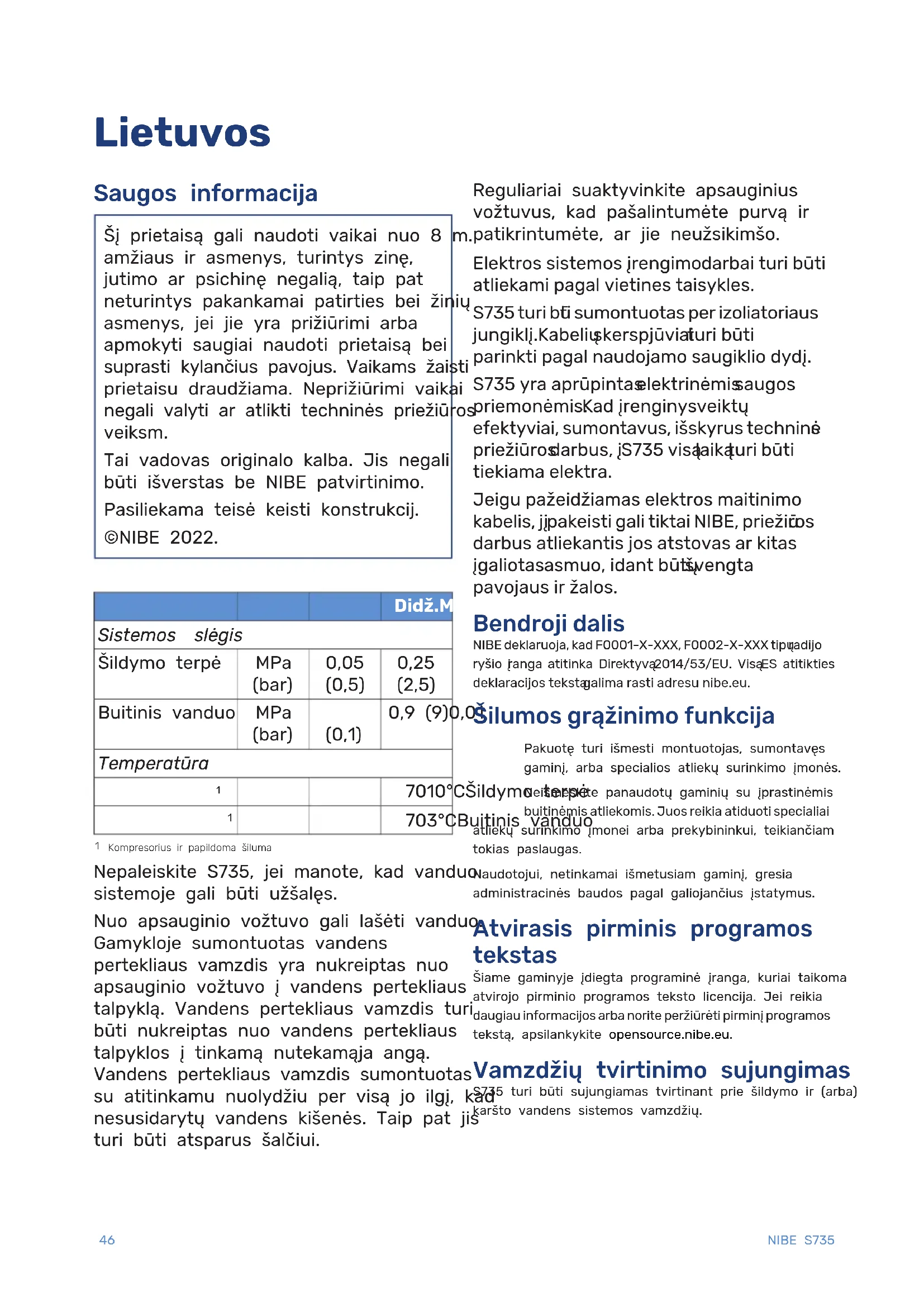 NAUDOJIMO INSTRUKCIJA S735 Nibe