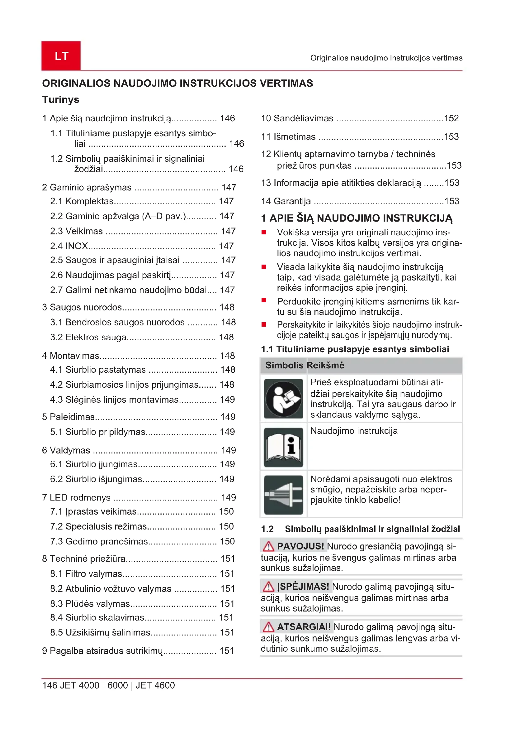 NAUDOJIMO INSTRUKCIJA Jet 60005 AL-KO