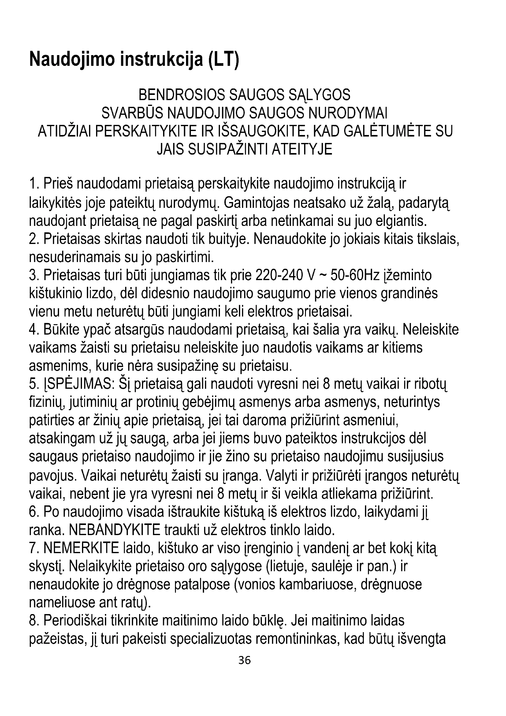 5. ĮSPĖJIMAS: Šį prietaisą gali naudoti vyresni nei 8 metų vaikai ir ribotų