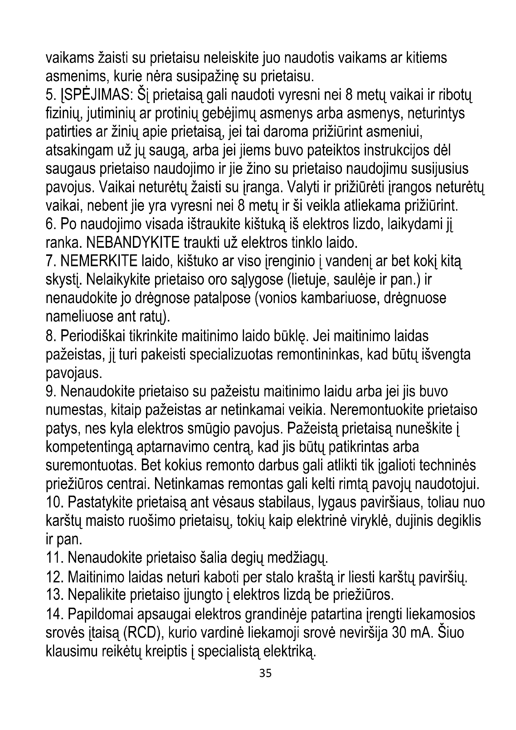 4. Būkite ypač atsargūs naudodami prietaisą, kai šalia yra vaikų. Neleiskite35