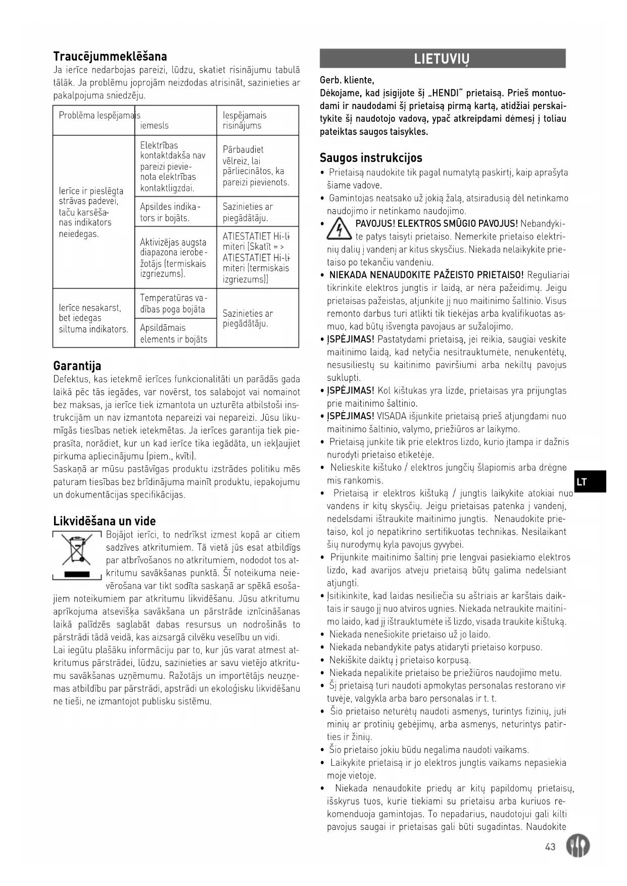 trauktas. Norėdami išjungti prietaisą, pasukite temperatū- ros valdiklį į nulinę padėtį. ATSTATYKITE apsauginį išjungiklį (Hi-ribotuvą arba šiluminį išjungiklį) (2 pav., 3 psl.) Atkreipkite dėmesį, kad ant RESET mygtuko įrengtas prietai