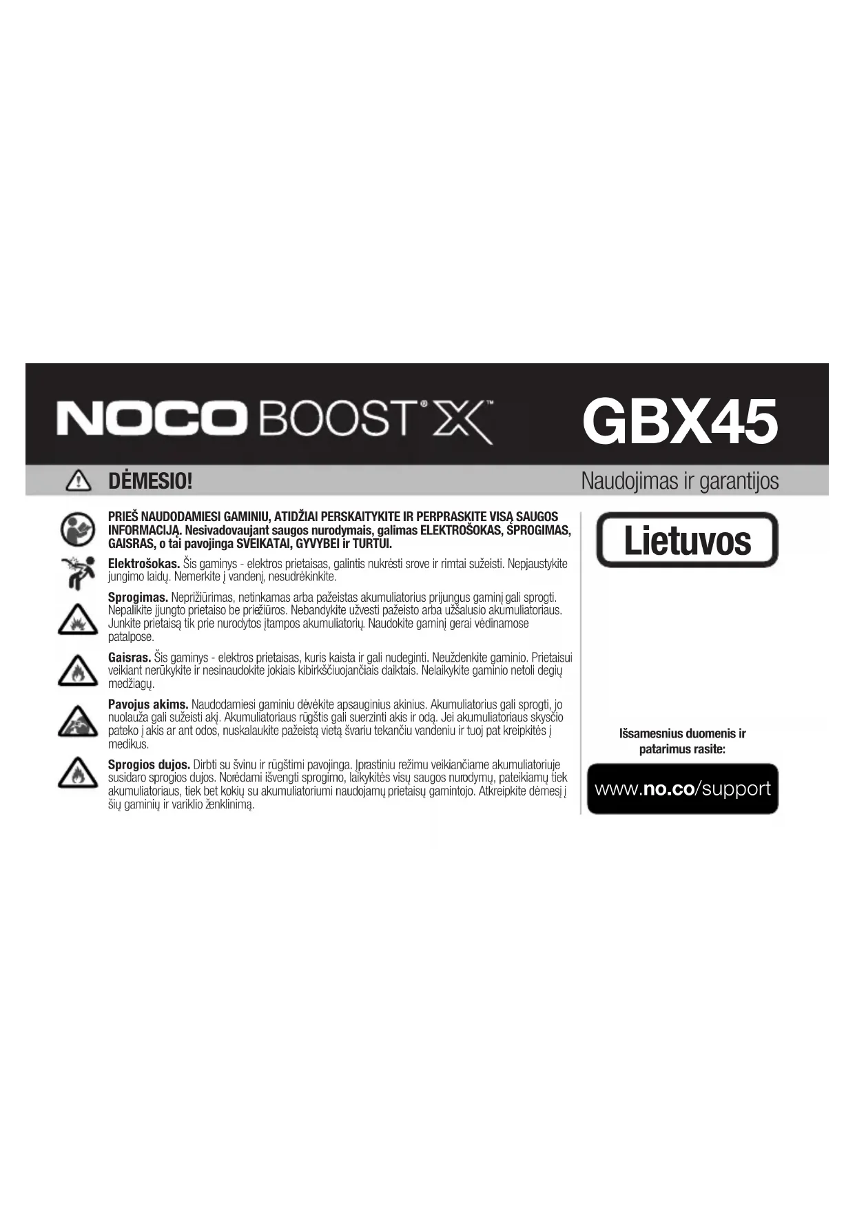 NAUDOJIMO INSTRUKCIJA Boost X GBX45 NOCO