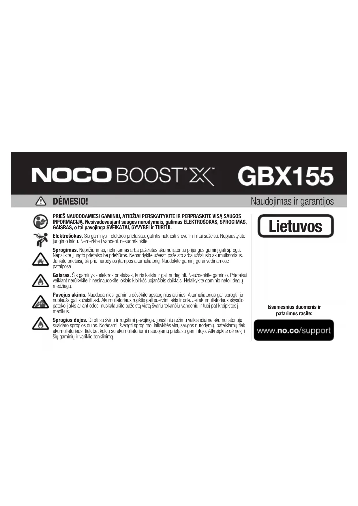 NAUDOJIMO INSTRUKCIJA Boost X GBX155 NOCO