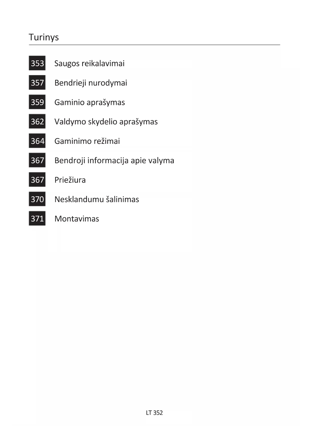 - Prieš išimdami nuimamas dalis, išjunkite orkaitę. Po valymo dalis surinkite pagal instrukcijas. Saugos reikalavimaiLT 354