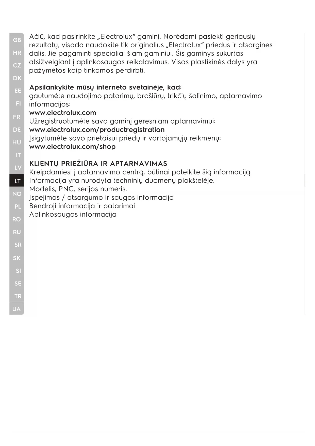 NAUDOJIMO INSTRUKCIJA Create 4 E4CM16ST ELECTROLUX