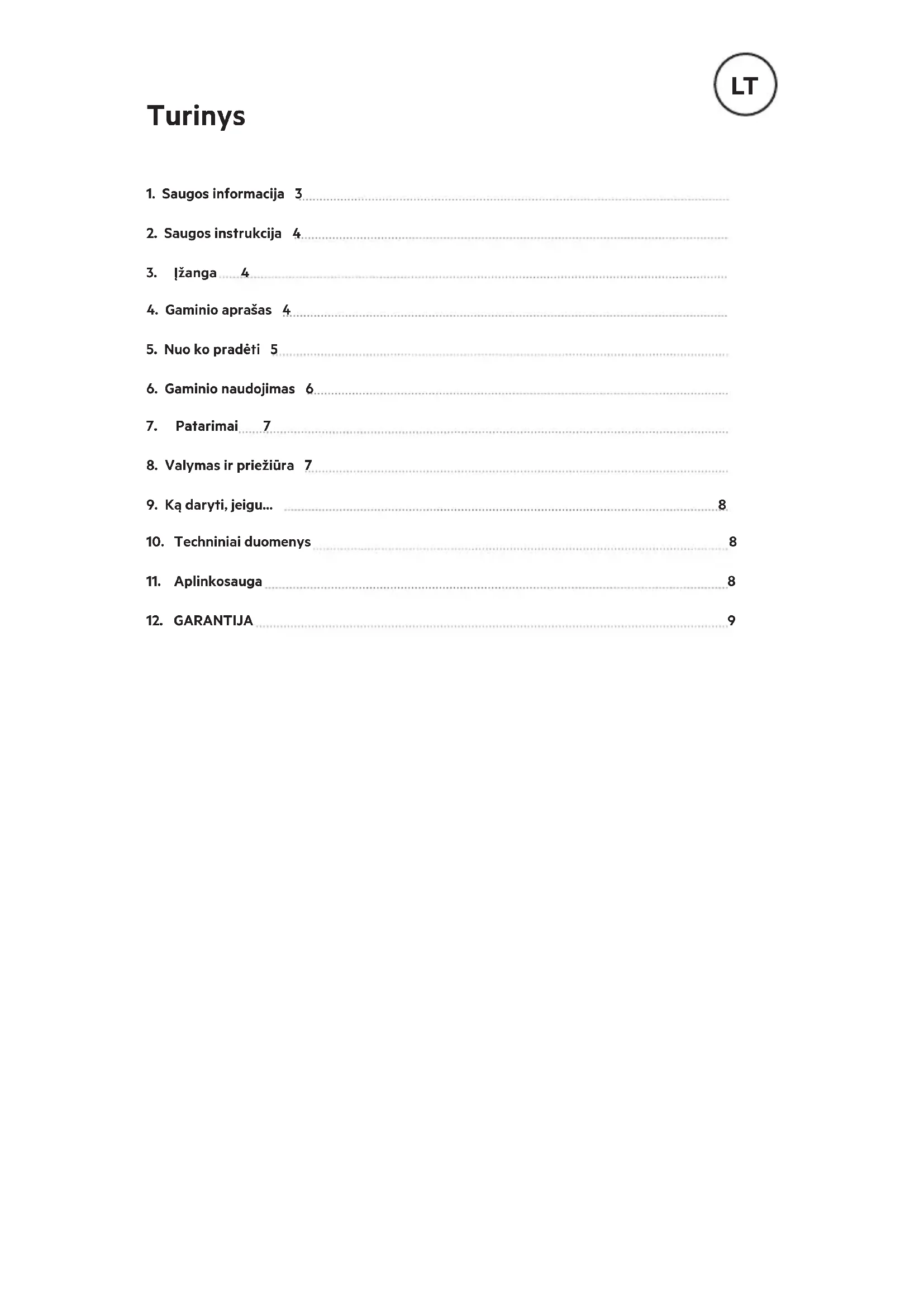 - Šis gaminys skirtas naudoti tik namuose76 2 SAUGOS INSTRUKCIJA