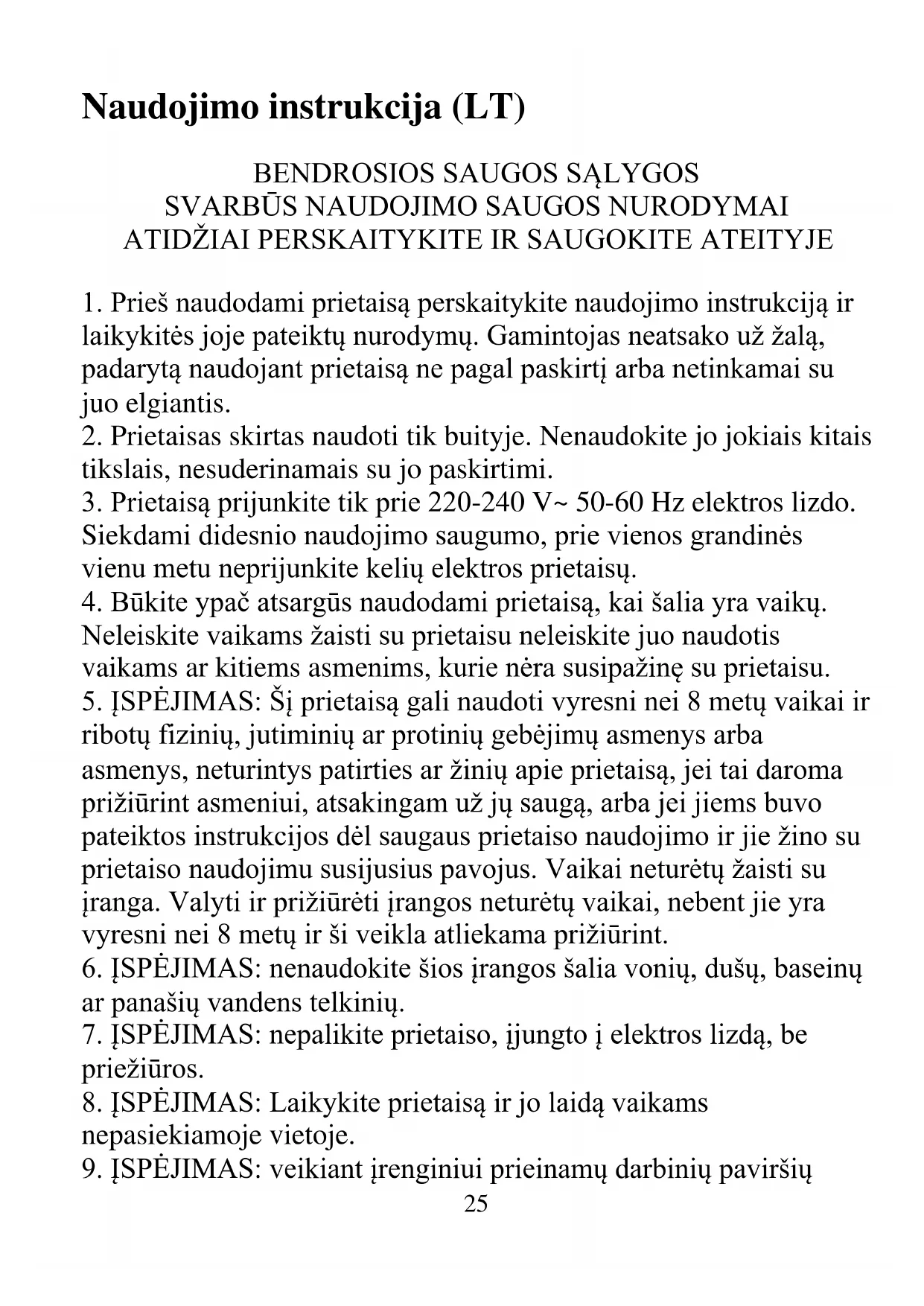 5. ĮSPĖJIMAS: Šį prietaisą gali naudoti vyresni nei 8 metų vaikai ir