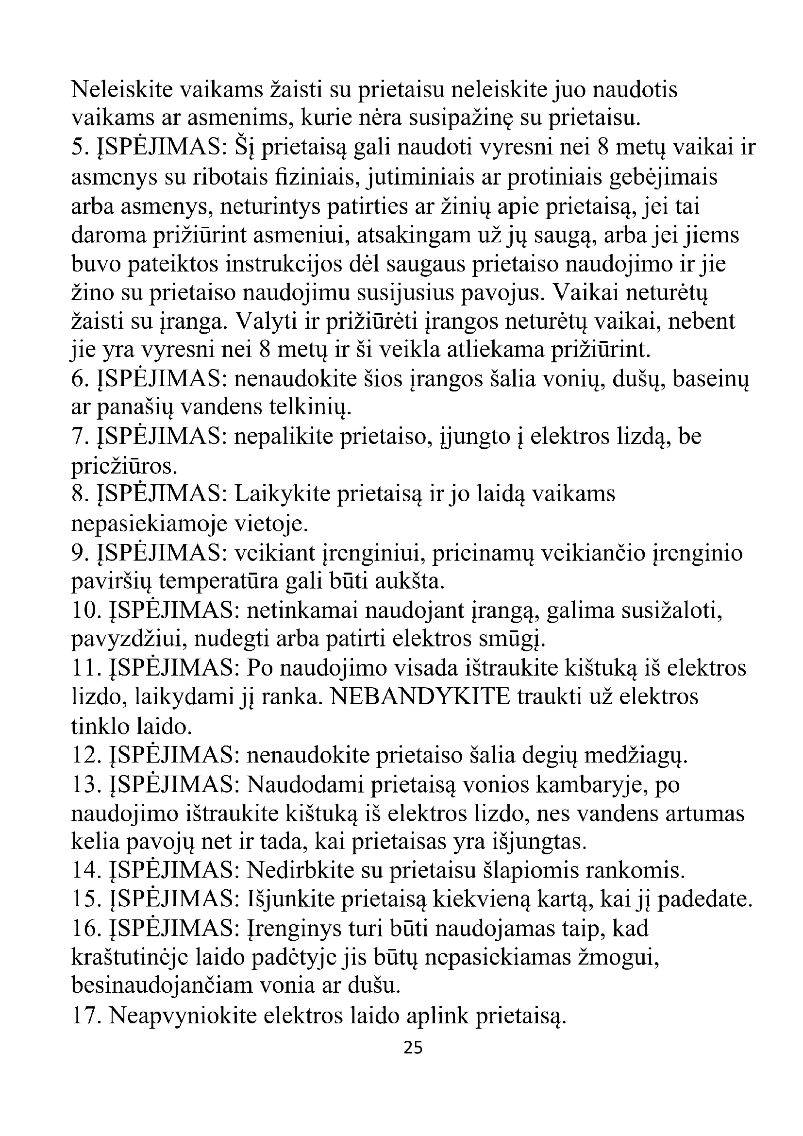 4. Būkite ypač atsargūs naudodami prietaisą, kai šalia yra vaikų.25