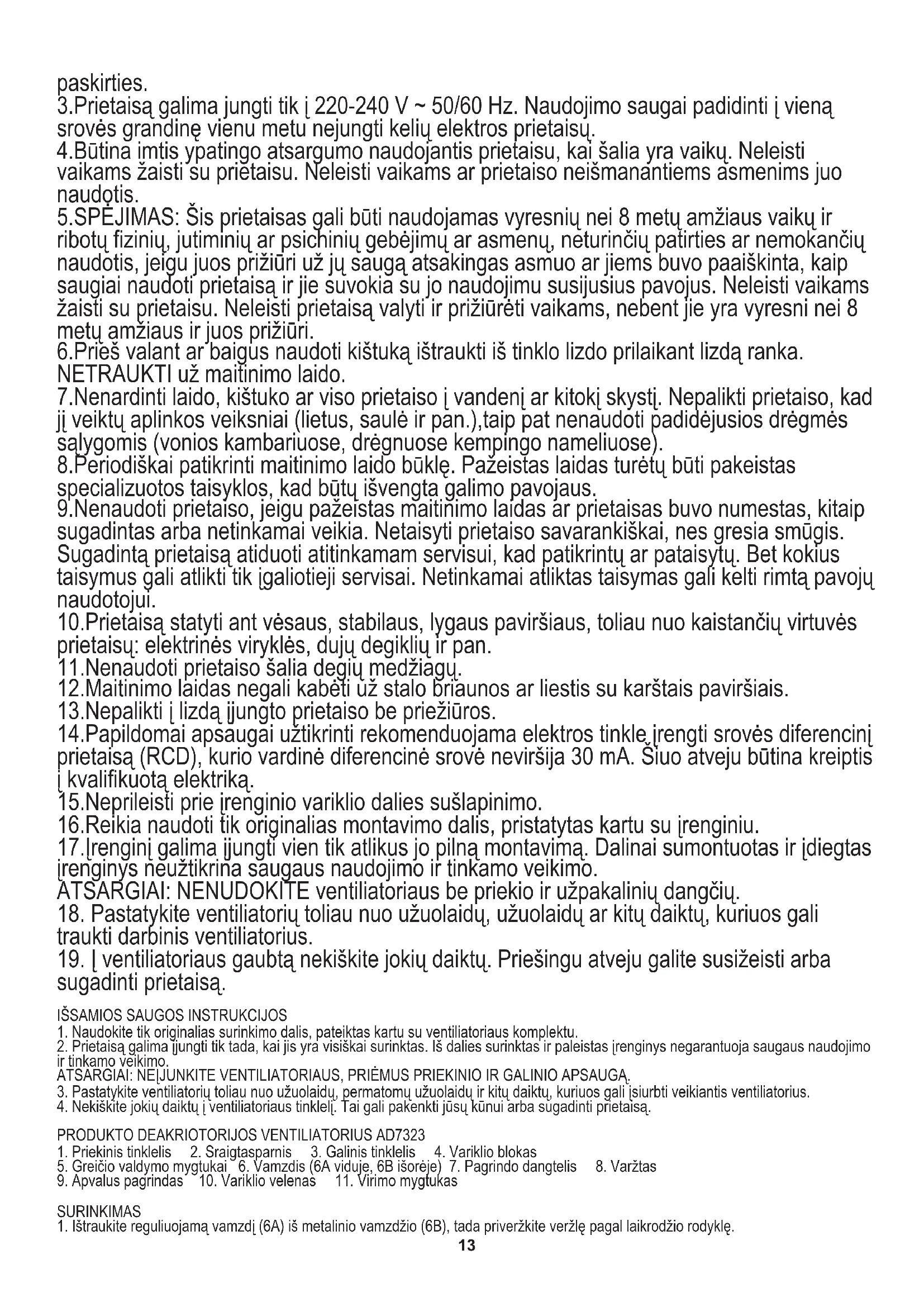 AD 7323 - Oro kondicionavimas ADLER - Nemokama naudojimo instrukcija