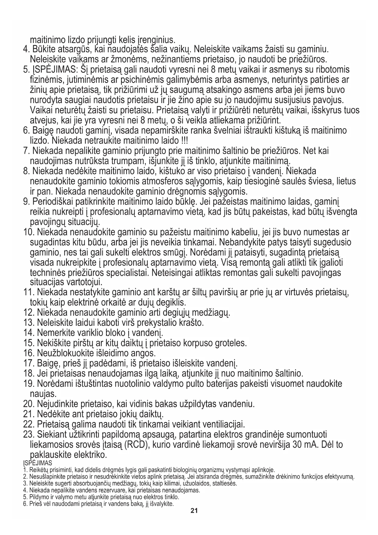 5. ĮSPĖJIMAS: Šį prietaisą gali naudoti vyresni nei 8 metų vaikai ir asmenys su ribotomis