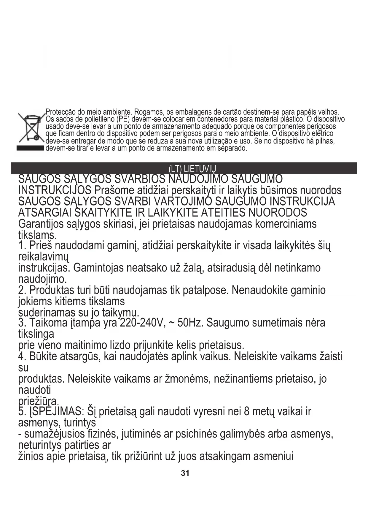 5. ĮSPĖJIMAS: Šį prietaisą gali naudoti vyresni nei 8 metų vaikai ir