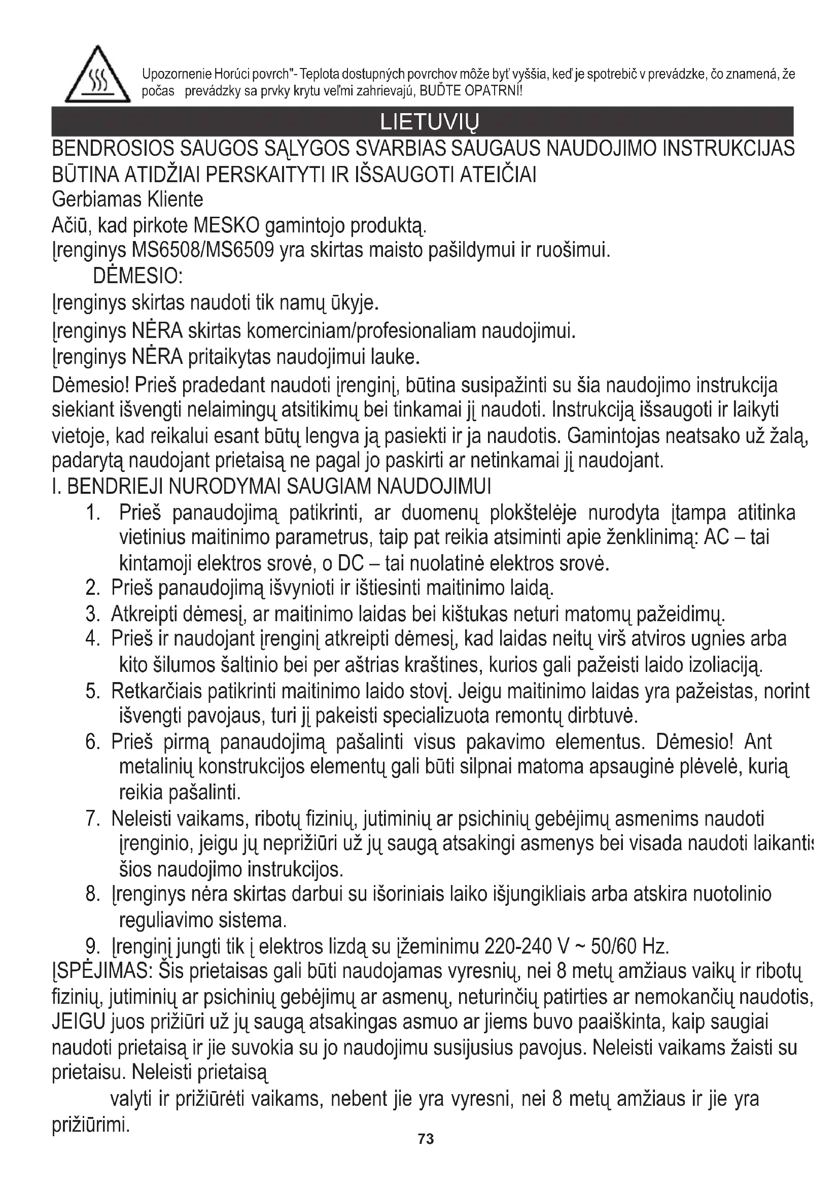 NAUDOJIMO INSTRUKCIJA MS 6509 Mesko