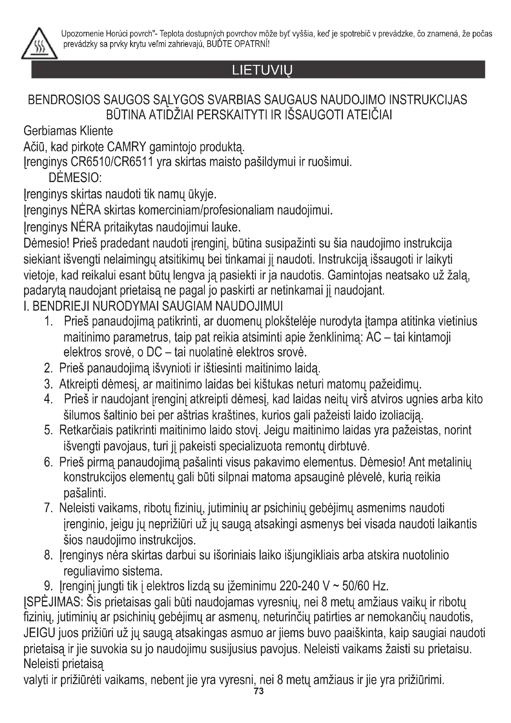 CR 6511 - Viryklė CAMRY - Nemokama naudojimo instrukcija