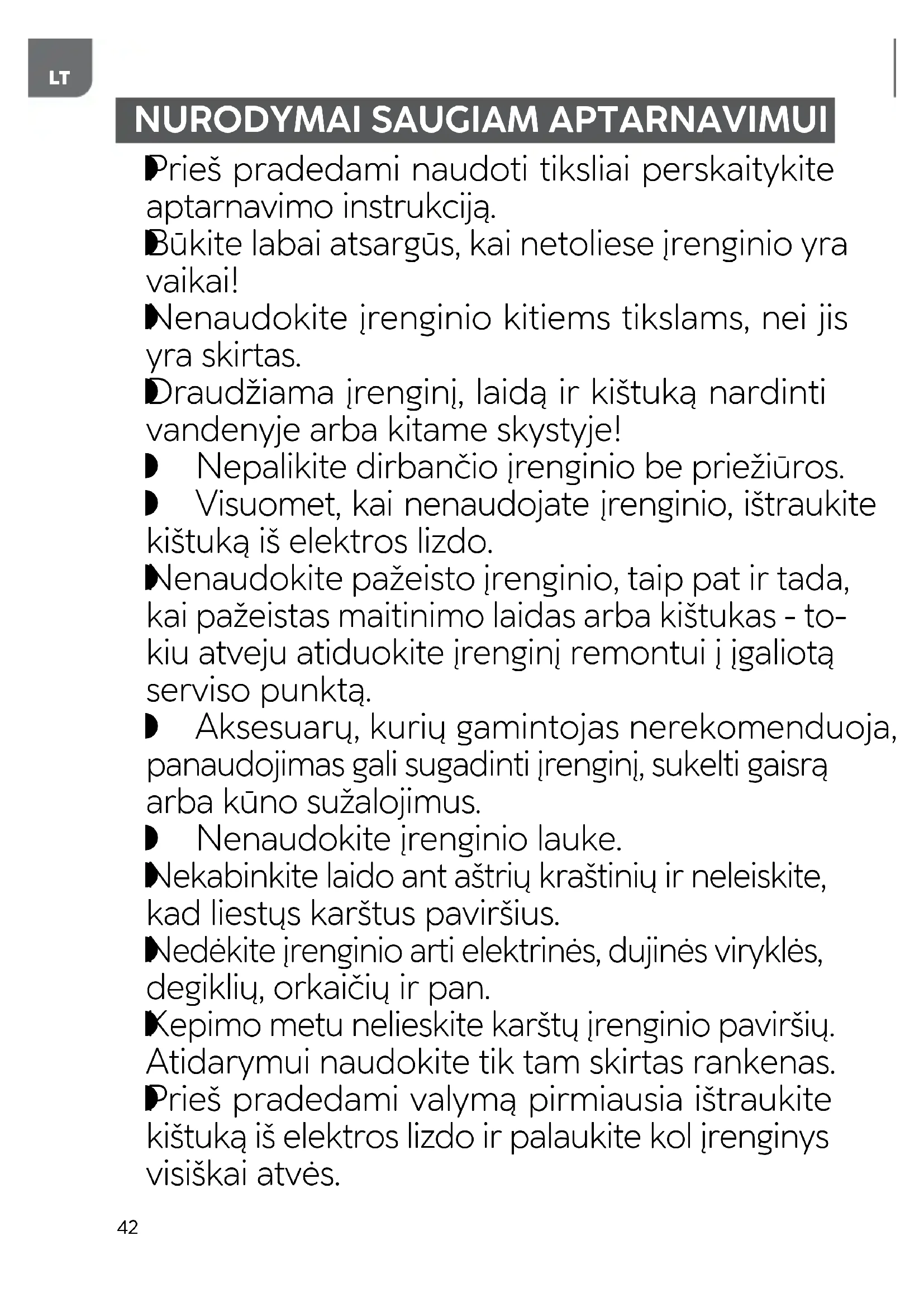 Prieš pradedami valymą pirmiausia ištraukite kištuką iš elektros lizdo ir palaukite kol įrenginys visiškai atvės.43