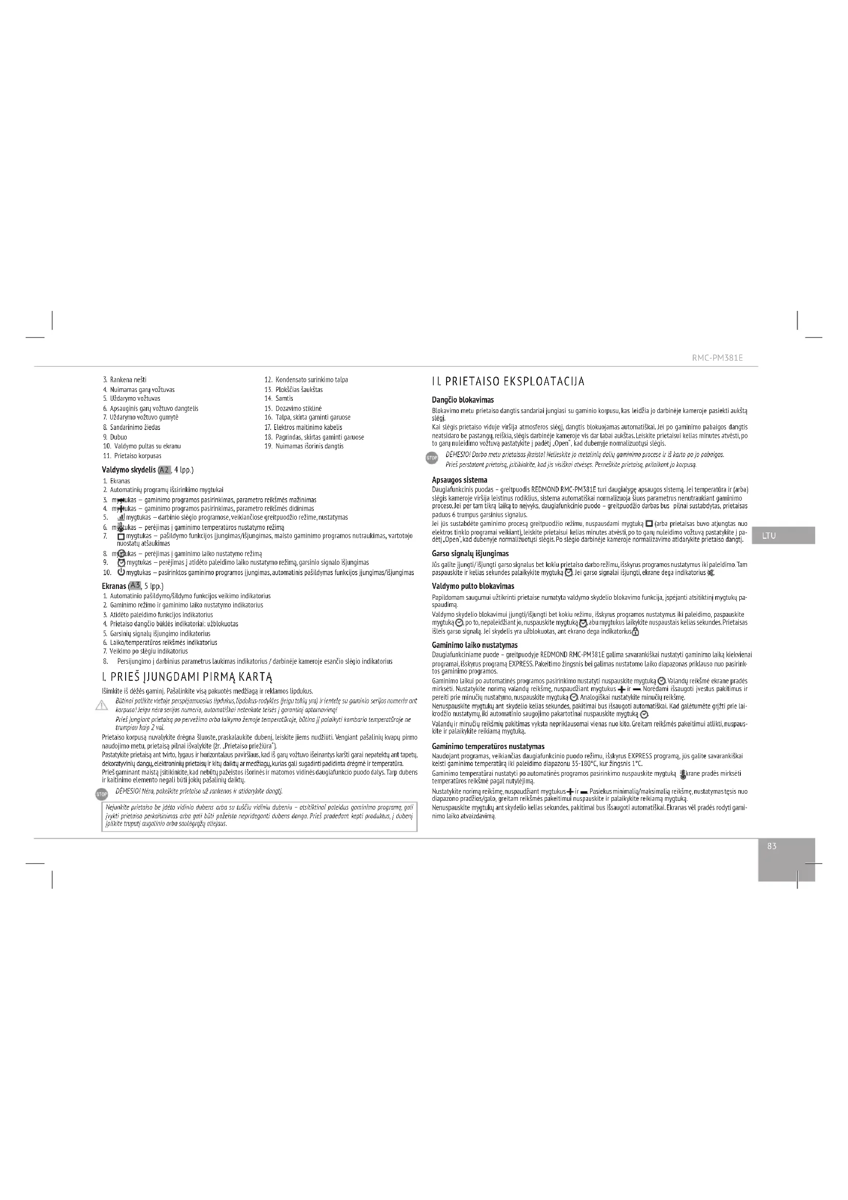 NAUDOJIMO INSTRUKCIJA RMCPM381E Redmond