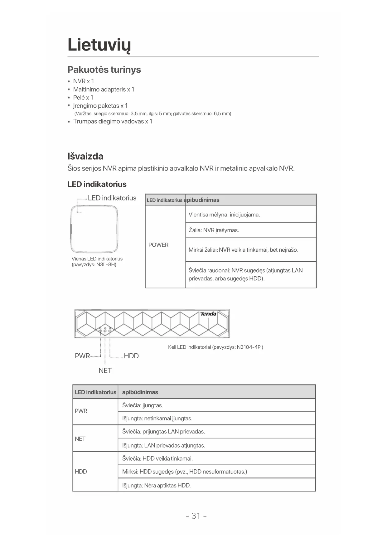 NAUDOJIMO INSTRUKCIJA N3L8H Tenda