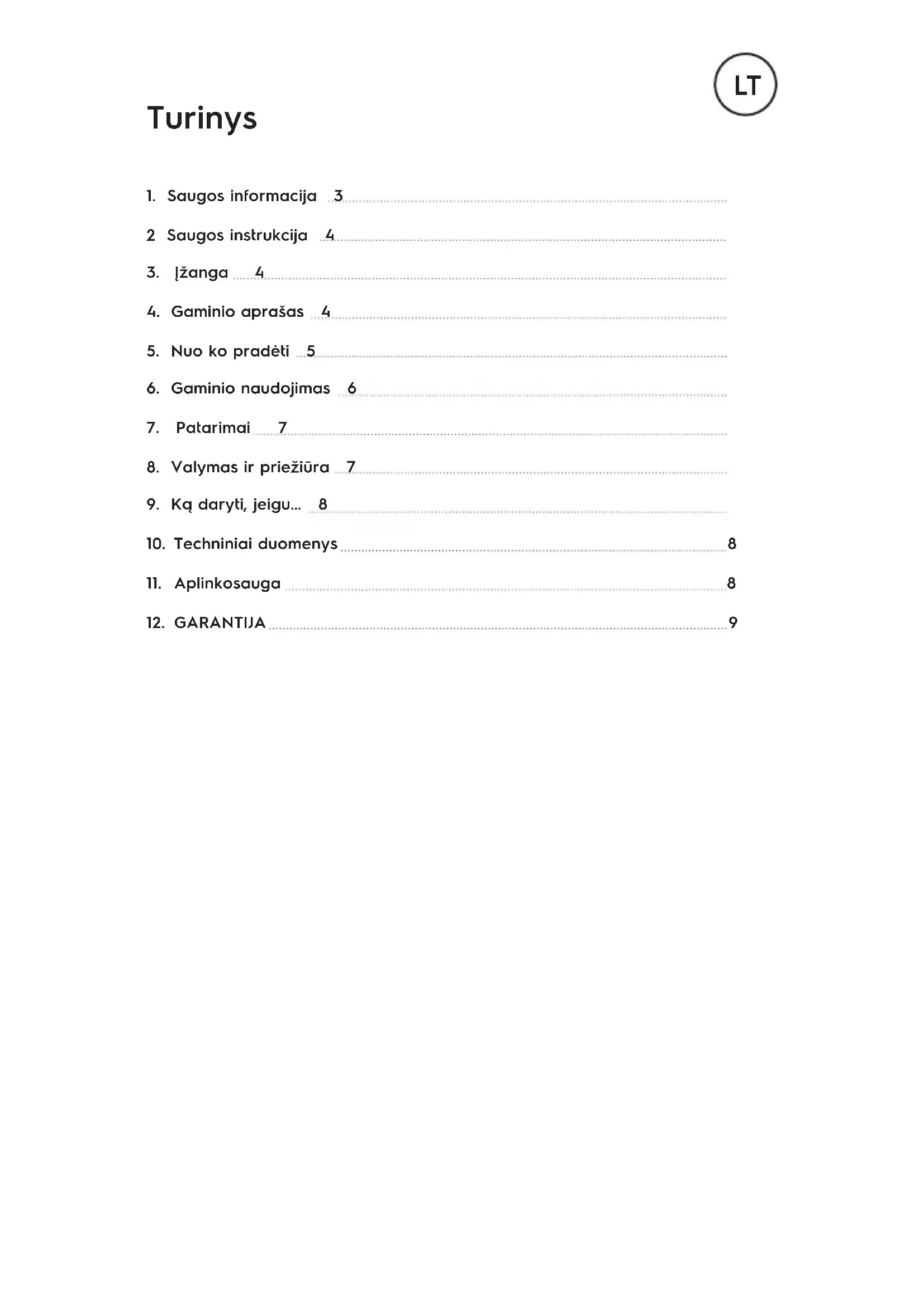 - Šis gaminys skirtas naudoti tik namuose76 2 SAUGOS INSTRUKCIJA
