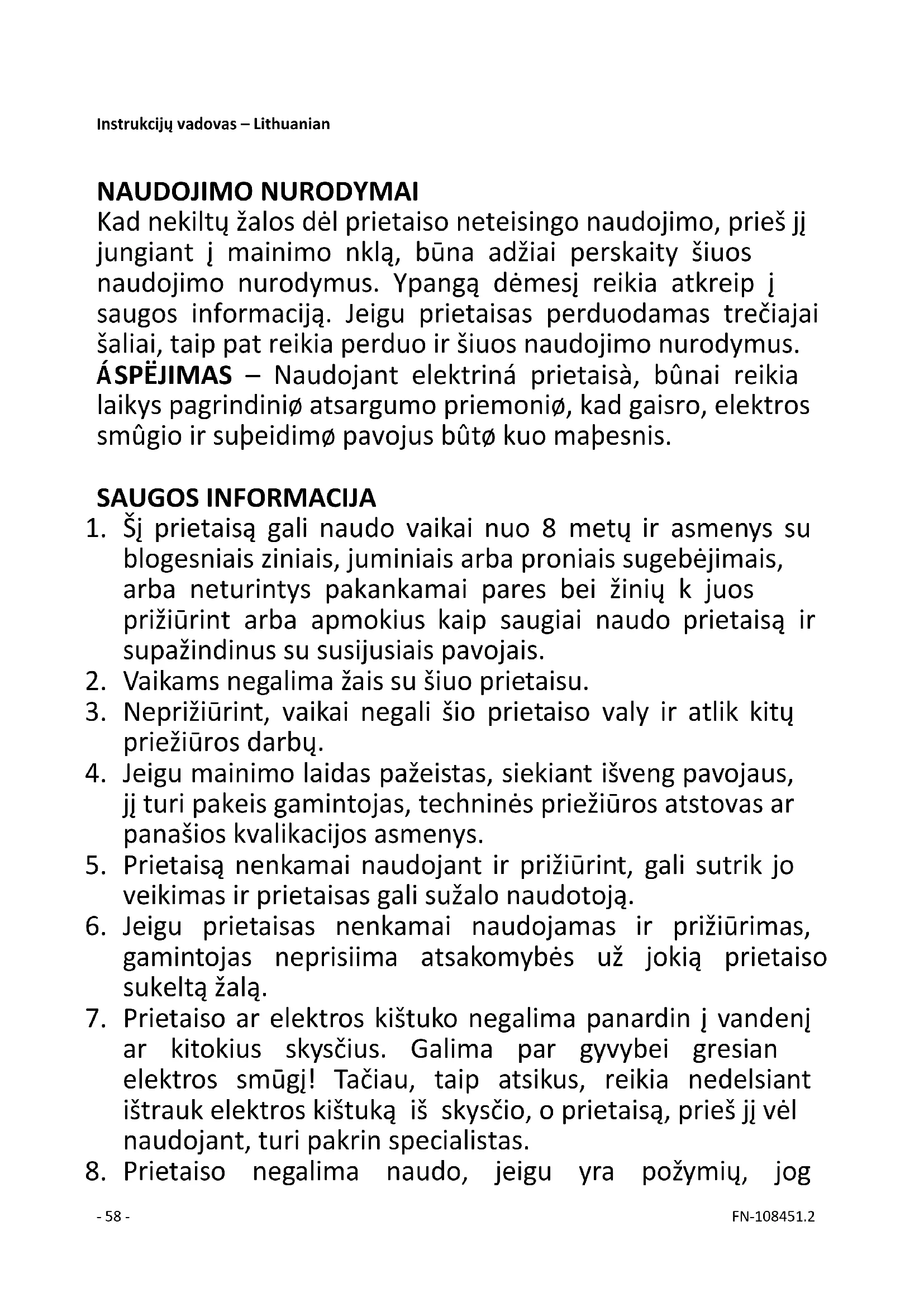 8. Prietaiso negalima naudoti, jeigu yra požymių, jog- 59 - FN-108451.2