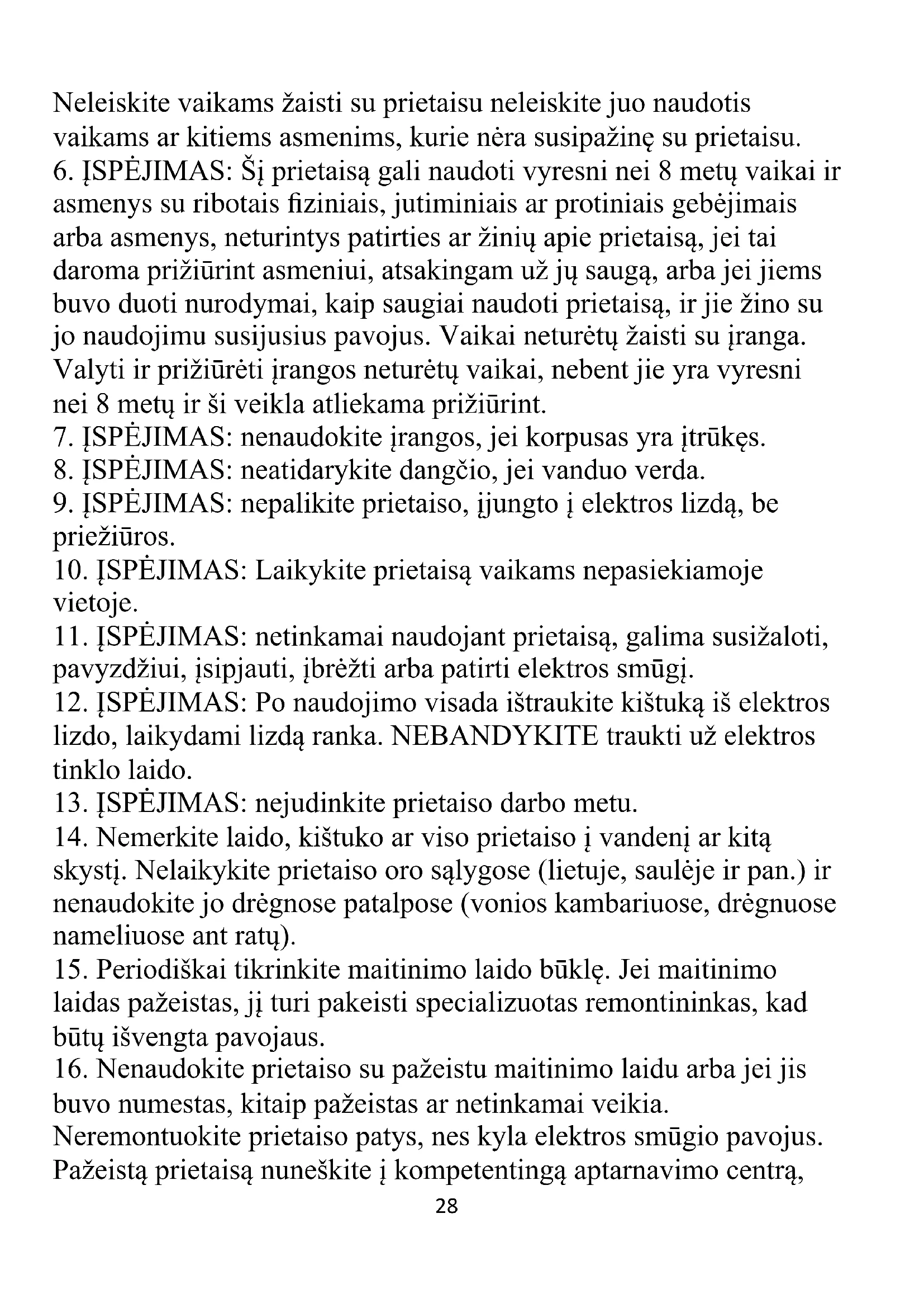5. Būkite ypač atsargūs naudodami prietaisą, kai šalia yra vaikų.28