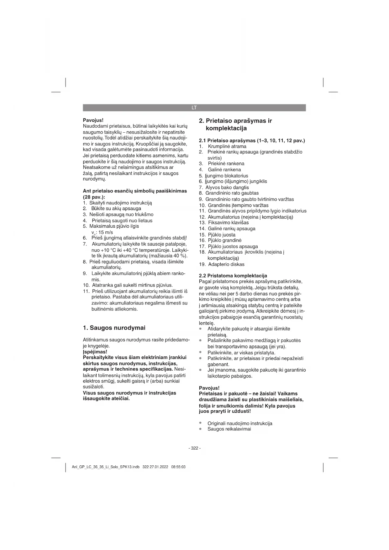 ir akumuliatorių išsiųsti mūsų klientų aptarnavimo tarnybai. Anl_GP_LC_36_35_Li_Solo_SPK13.indb 324 27.01.2022 08:55:03LT