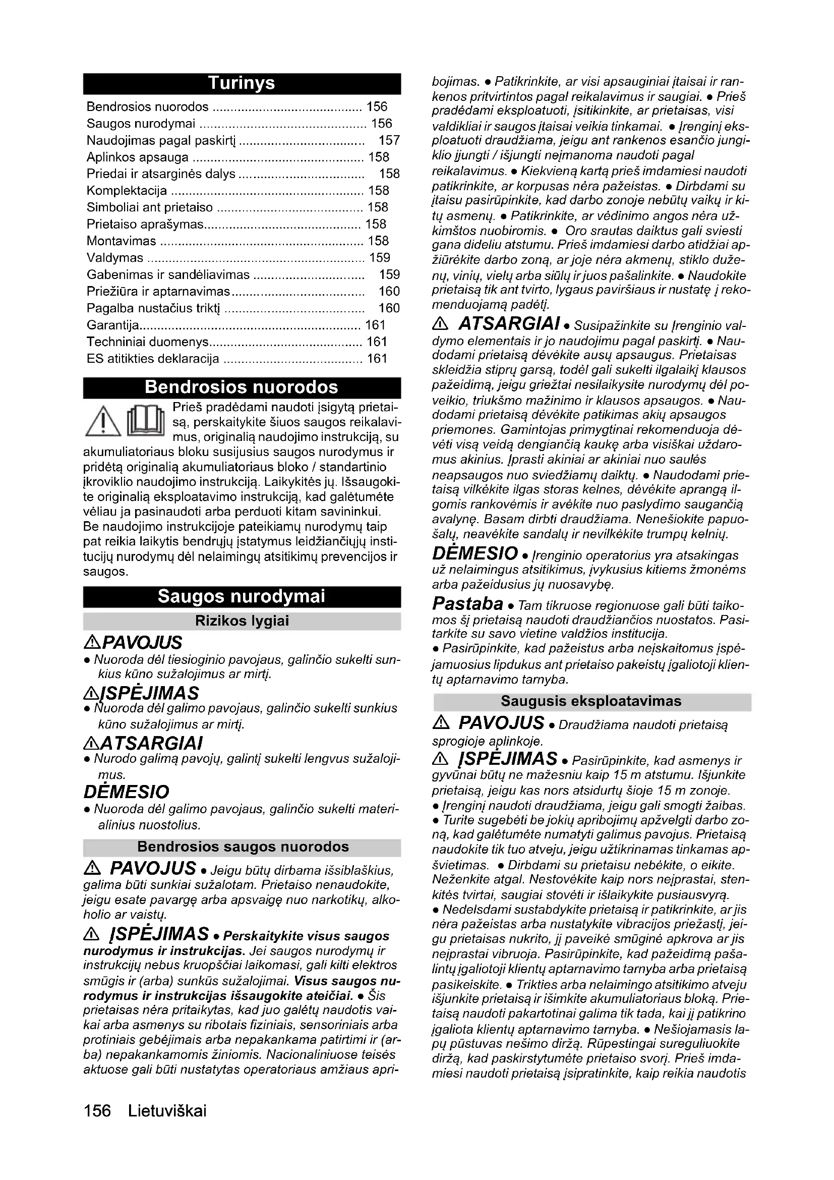 - Saugos nurodymai p. 156