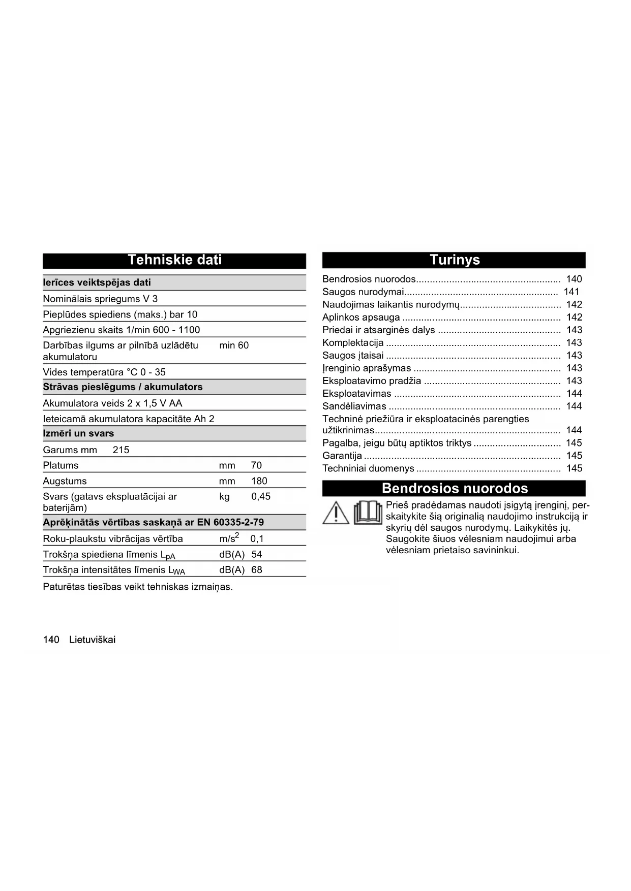 - Saugos nurodymai p. 141