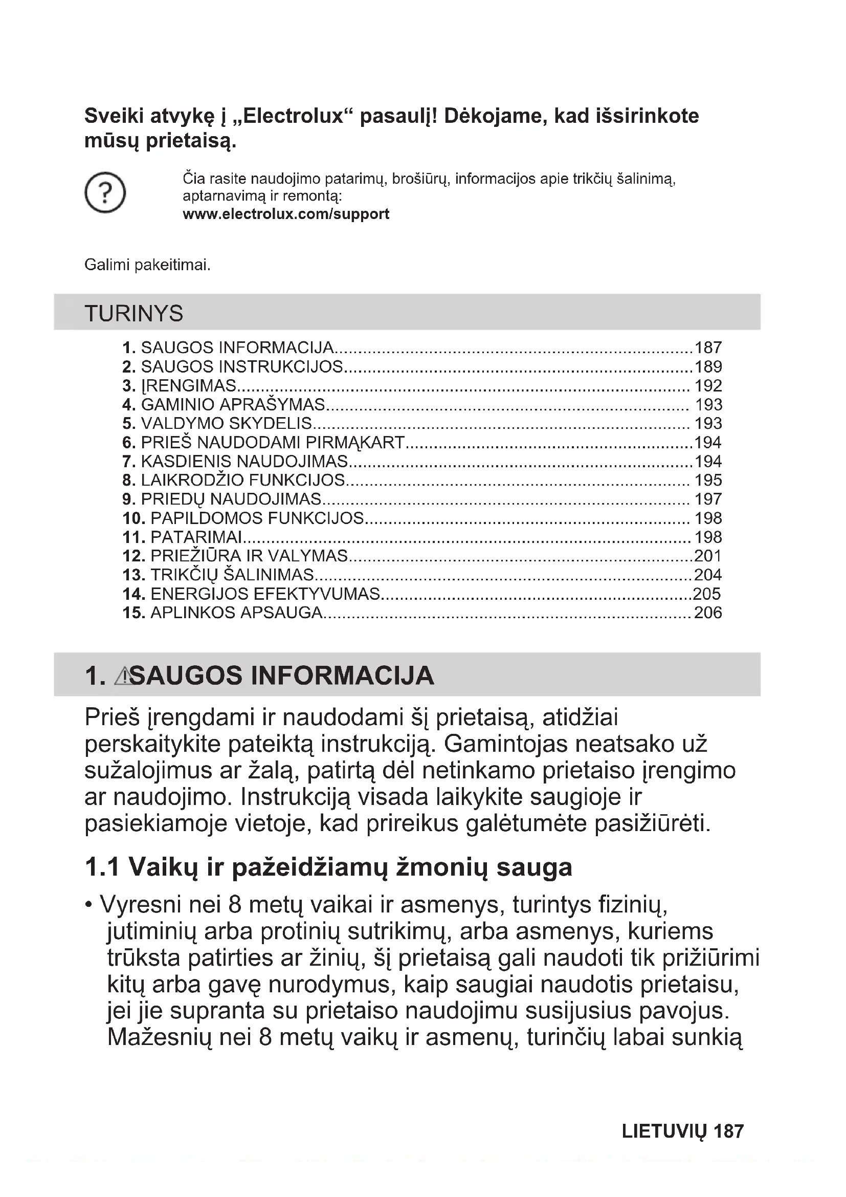 Sveiki atvykę „Electrolux“ pasaulj! Dékojure, kad išsirinkote mūsu prietaisa.