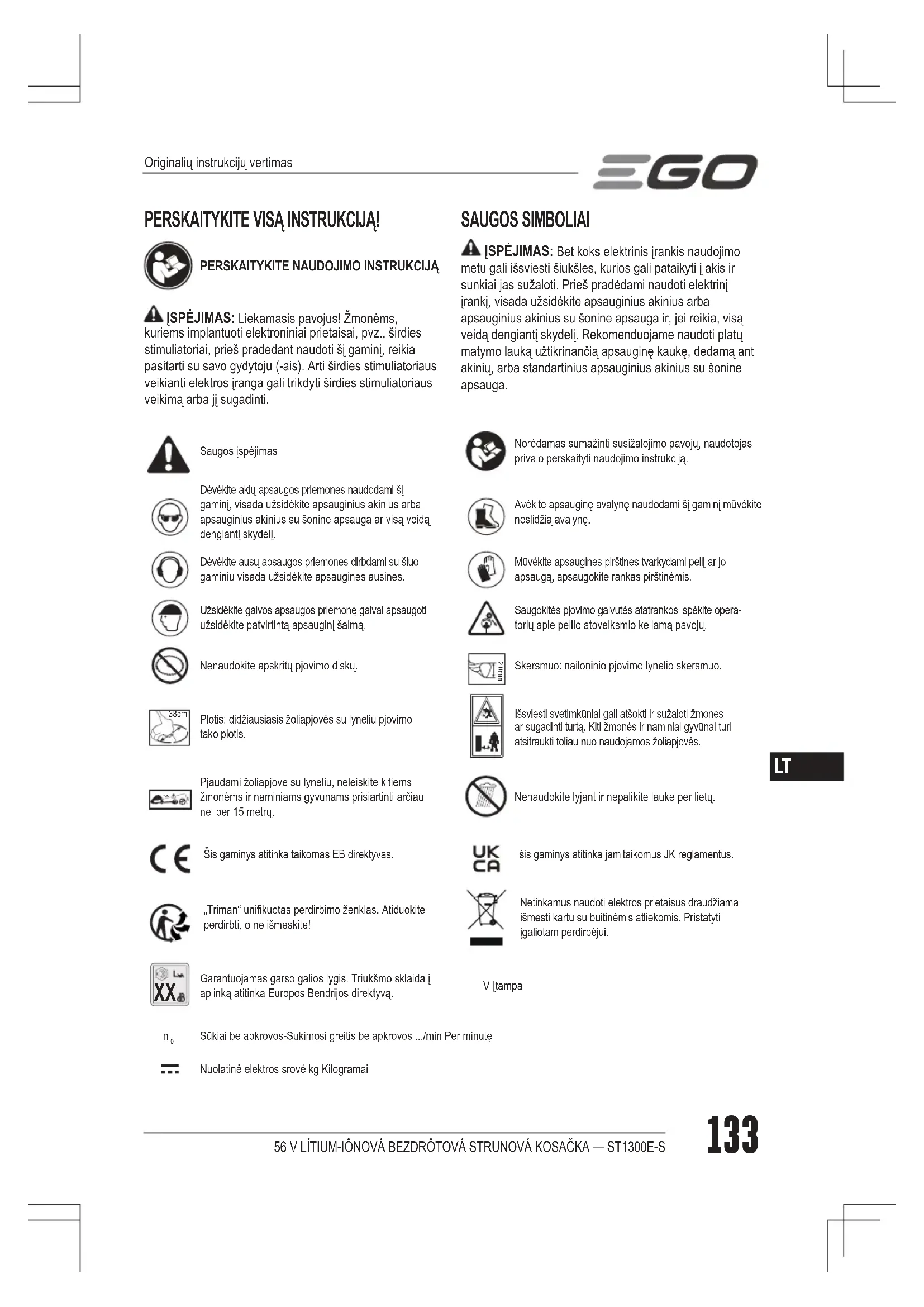 ST1301ES - žoliapjovė EGO - Nemokama naudojimo instrukcija