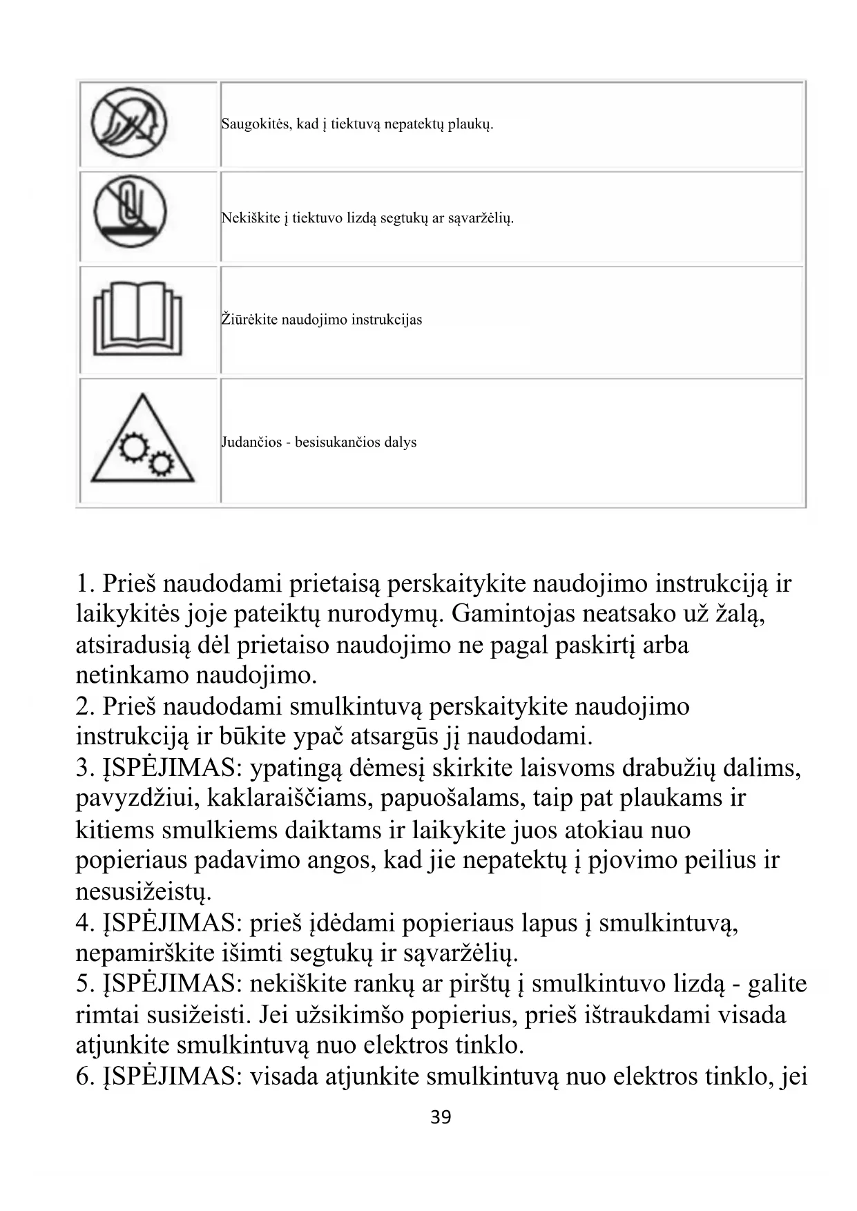 2. Prieš naudodami smulkintuvą perskaitykite naudojimo