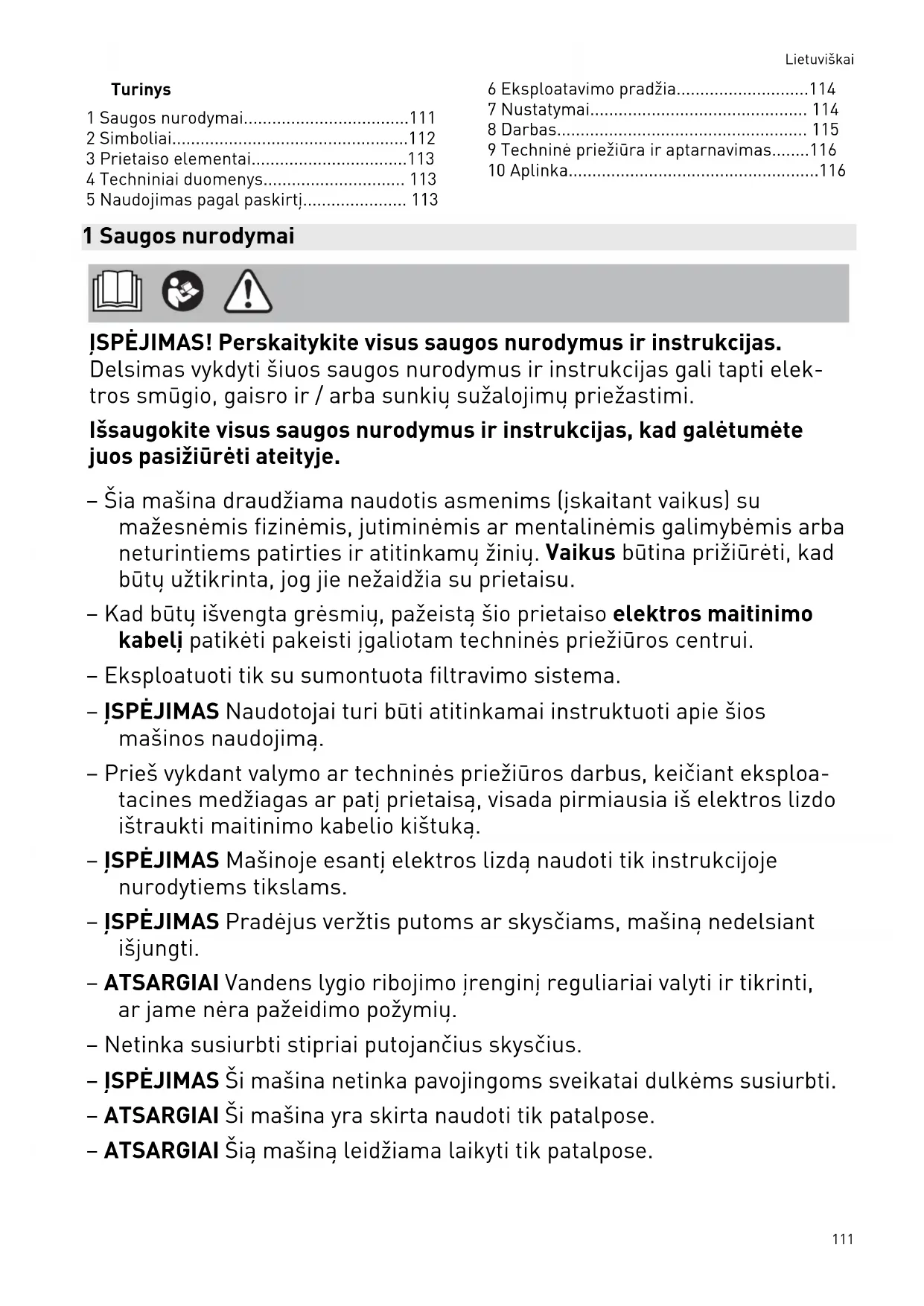 - 5 Naudojimas pagal paskirtį p. 113