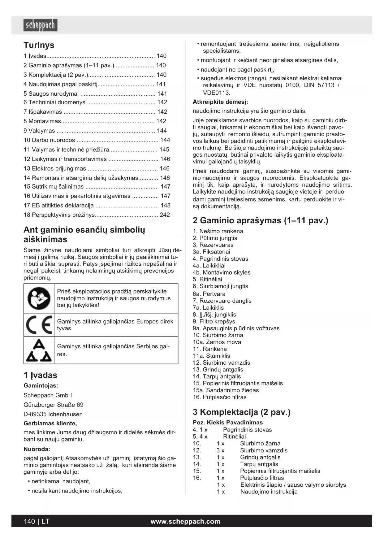 Gaminj leidziama eksploatuoti tik su gamintojo originaliomis dalimis ir priedais.