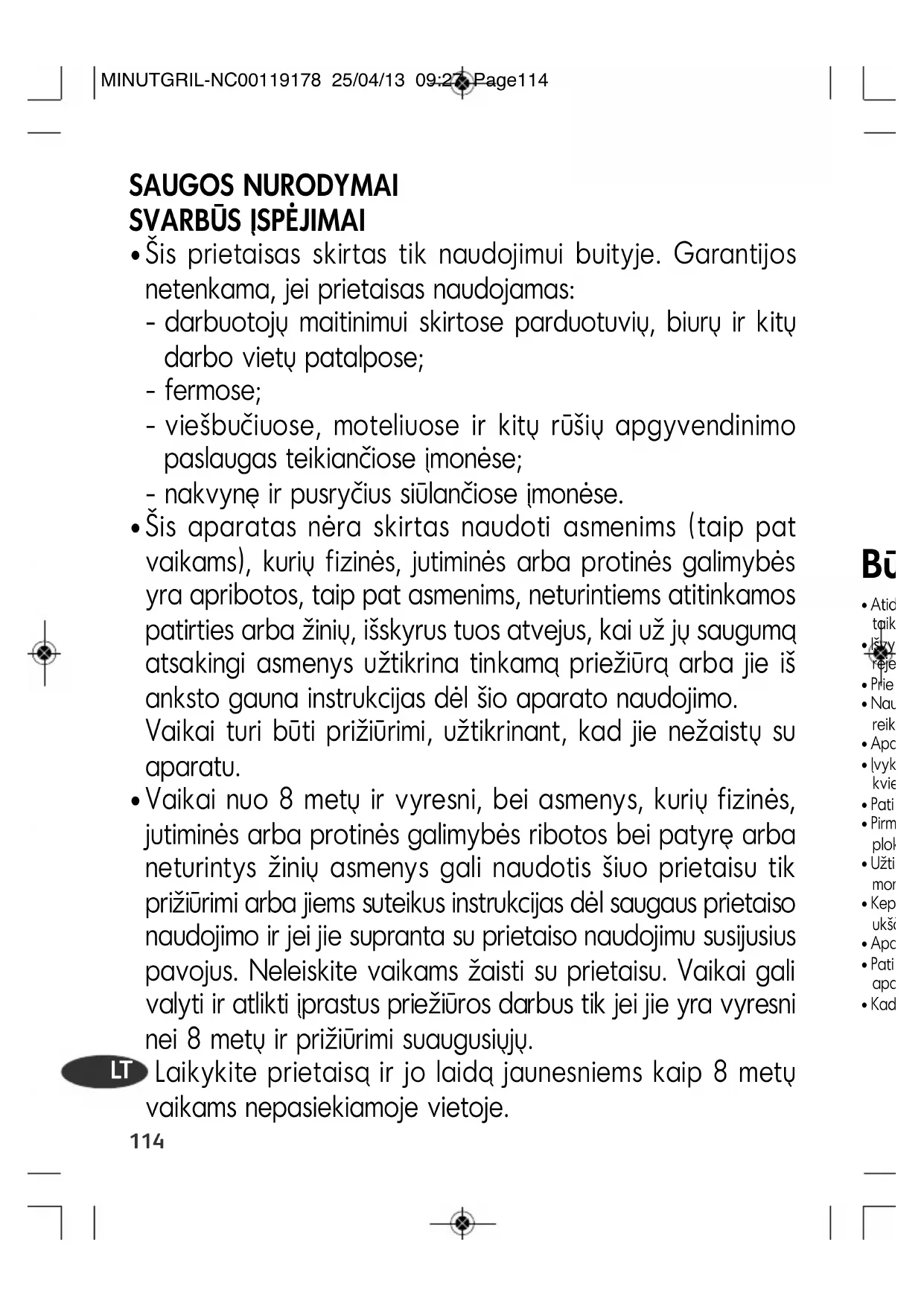 MINUTGRIL-NC00119178 25/04/13 09:27 Page116Instrukcijos Aiškinamieji paveikslėliai yra paskutiniuose puslapiuose.