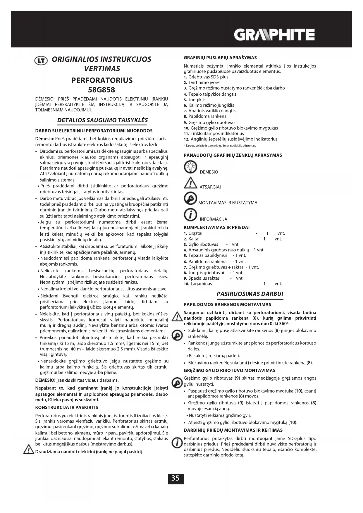 NAUDOJIMO INSTRUKCIJA 58G858 Graphite