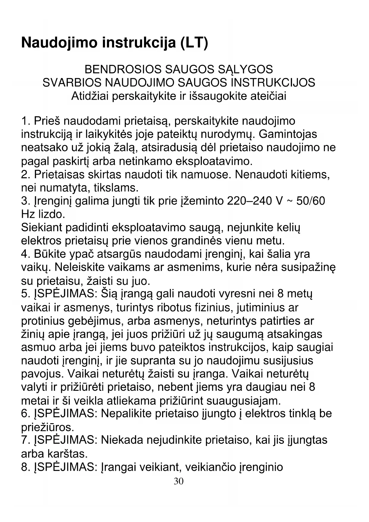 5. ĮSPĖJIMAS: Šią įrangą gali naudoti vyresni nei 8 metų