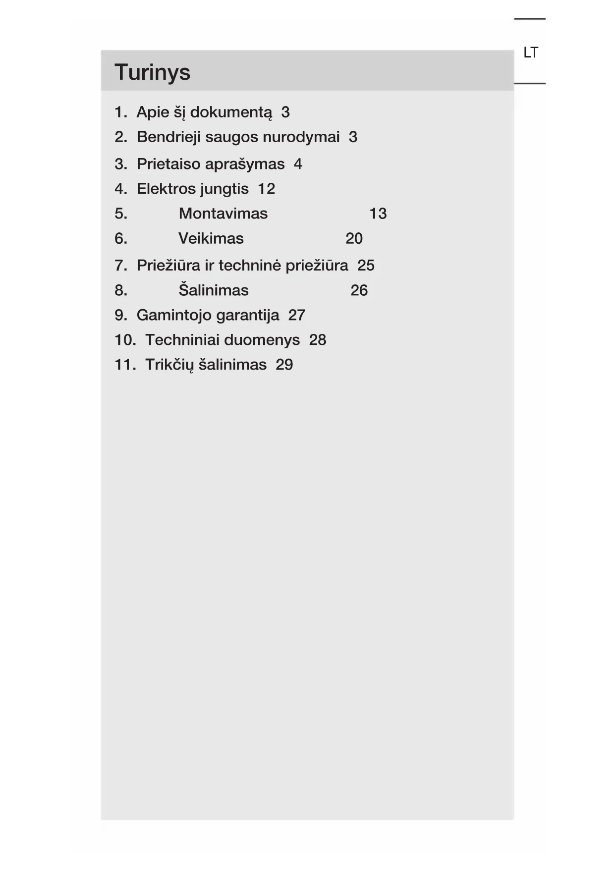 - Užsukite prijungimo dėžutę.– 19 – Turinys LTLT