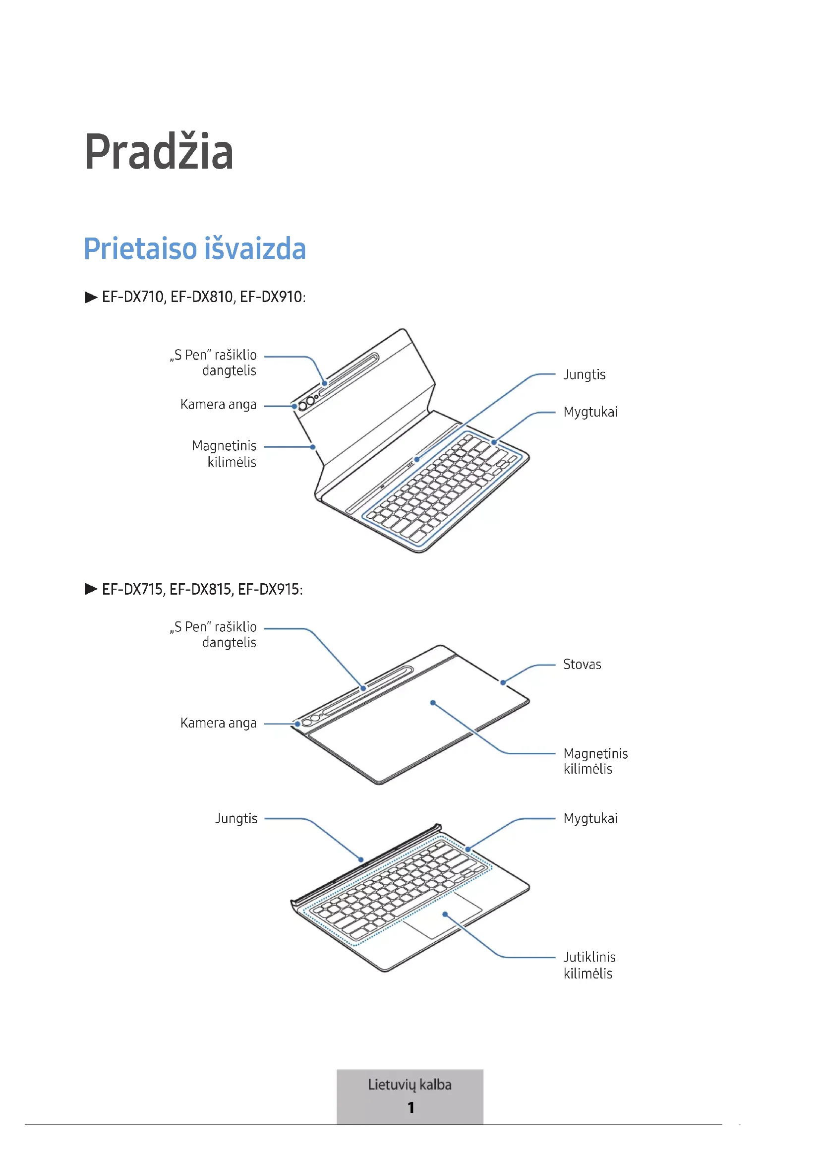 EF-DX715, EF-DX815, EF-DX915: Kamera angaStovasMagnetinis kilimėlis „S Pen“ rašiklio dangtelisJutiklinis kilimėlisMygtukaiJungtis Lietuvių kalba