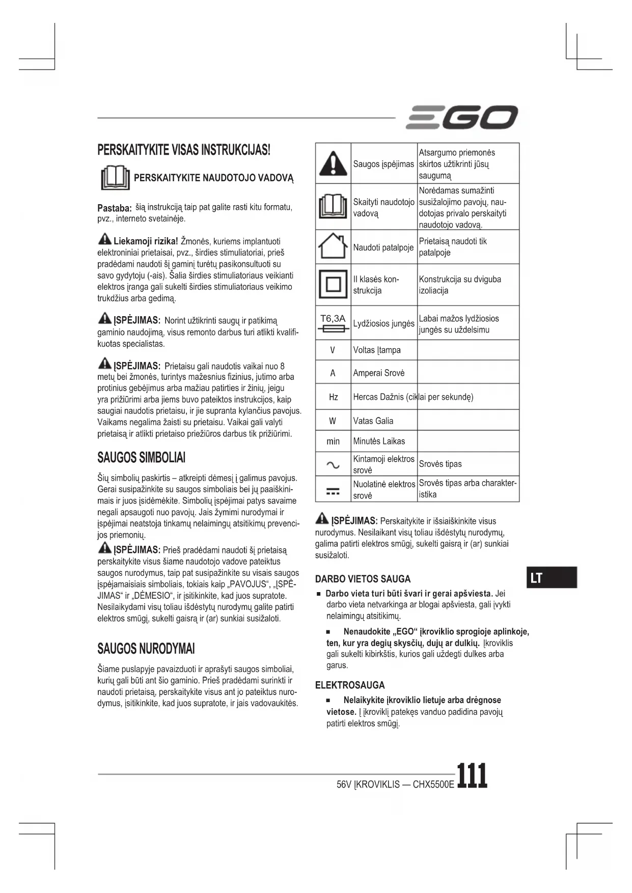 NAUDOJIMO INSTRUKCIJA CHX5500 EGO
