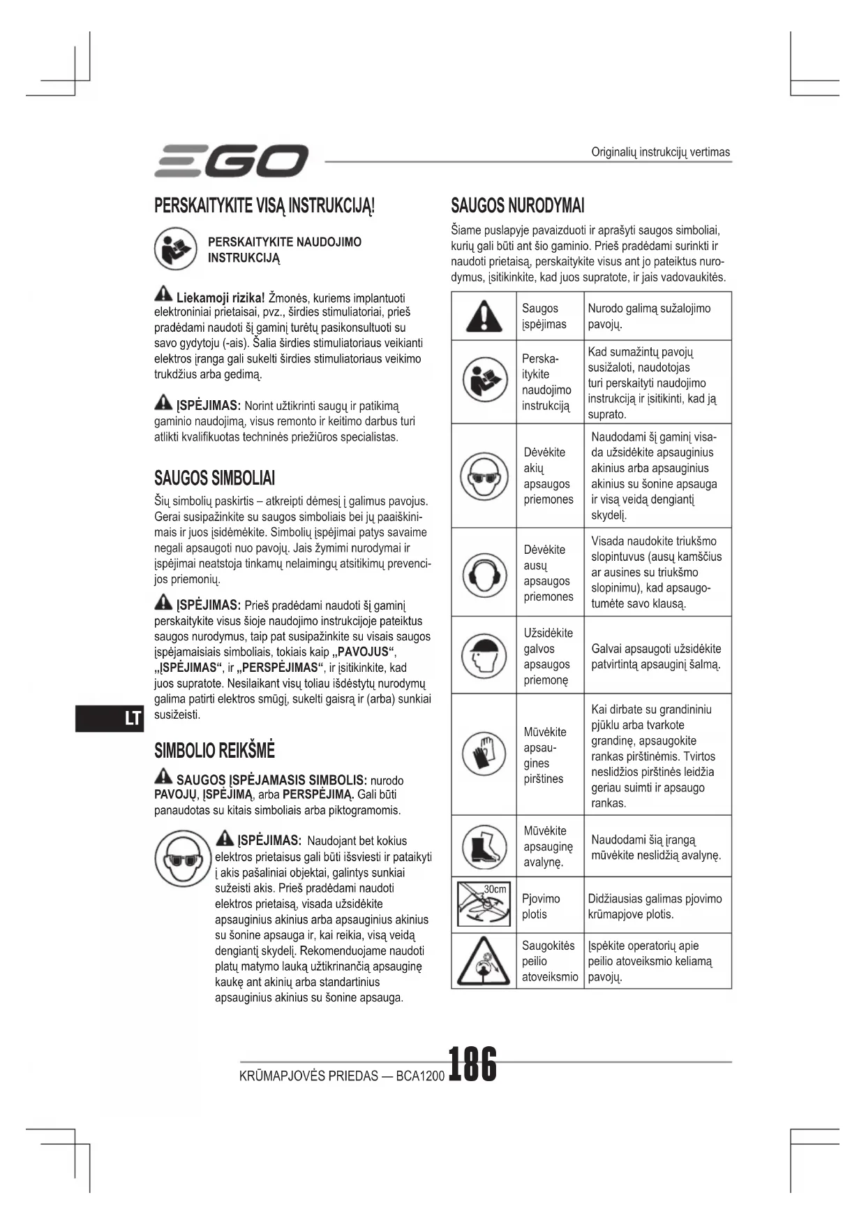 Raskite įrenginio instrukciją nemokamai BCA1200 EGO PDF formatu.